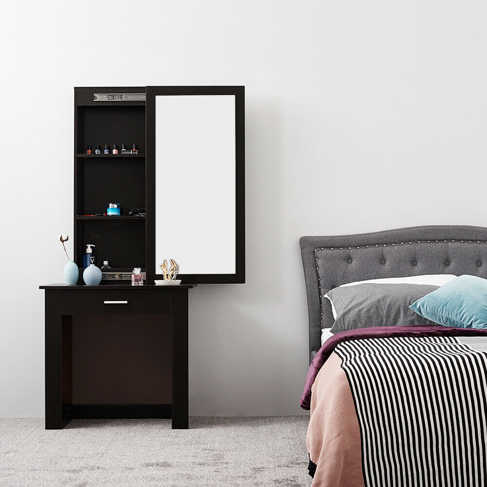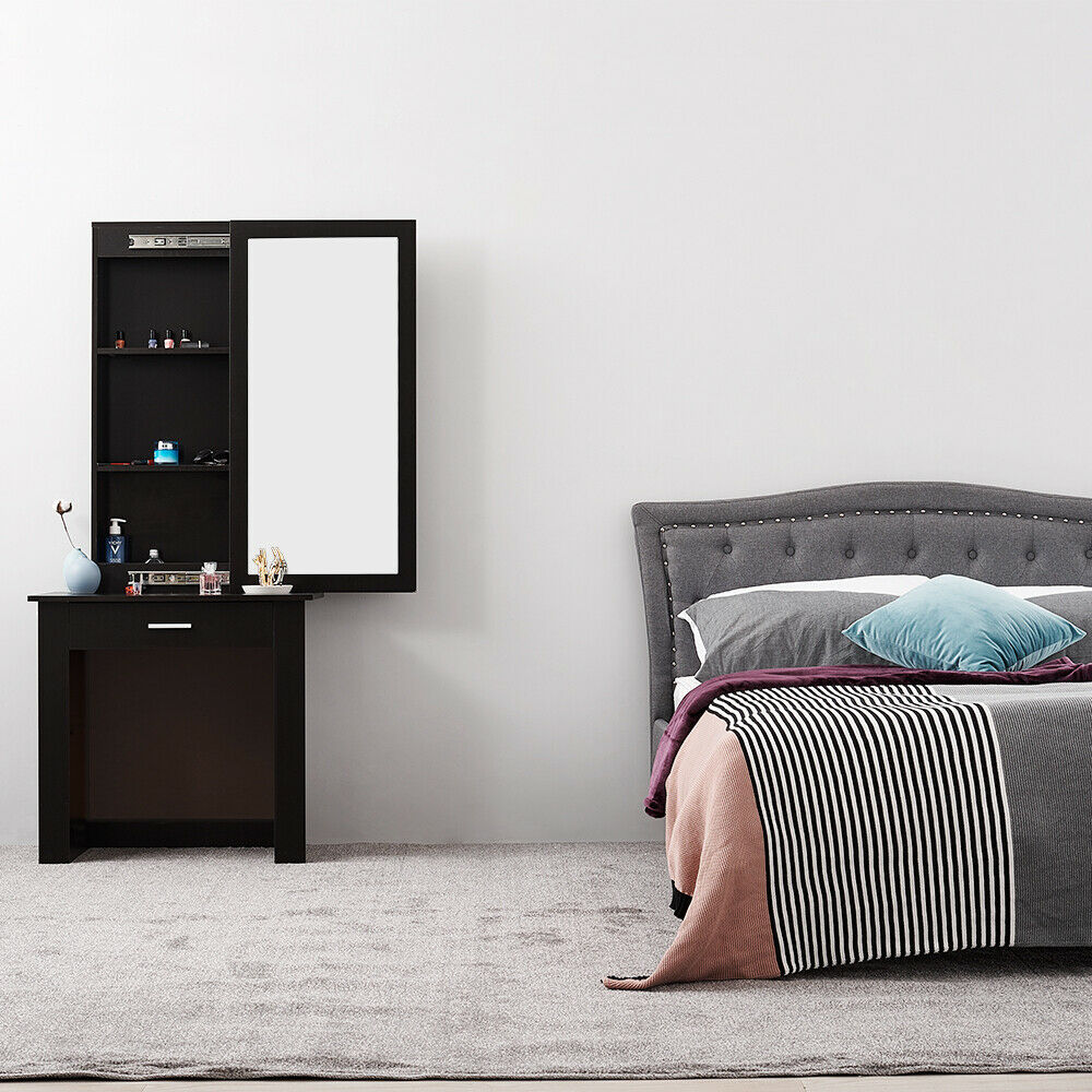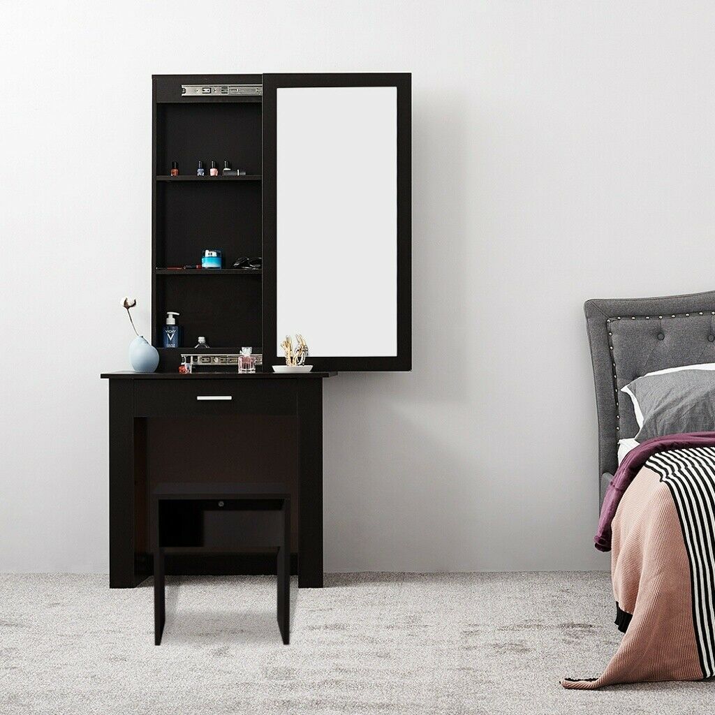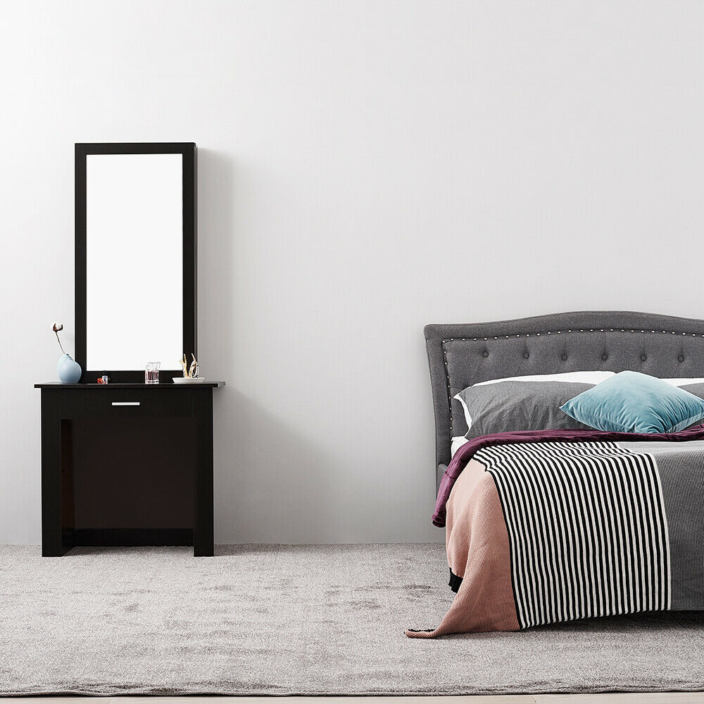 Black Dressing Table Make Up Desk Stool W/ Sliding Storage Mirror Drawer Vanity