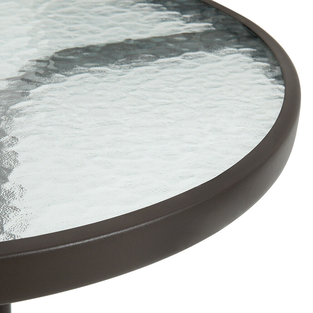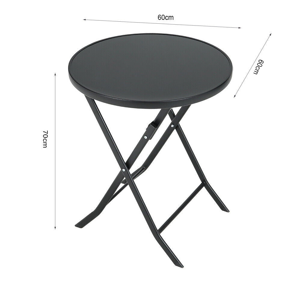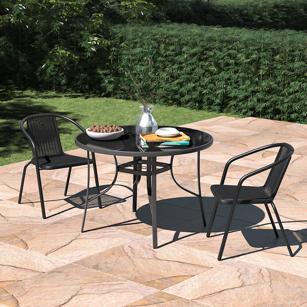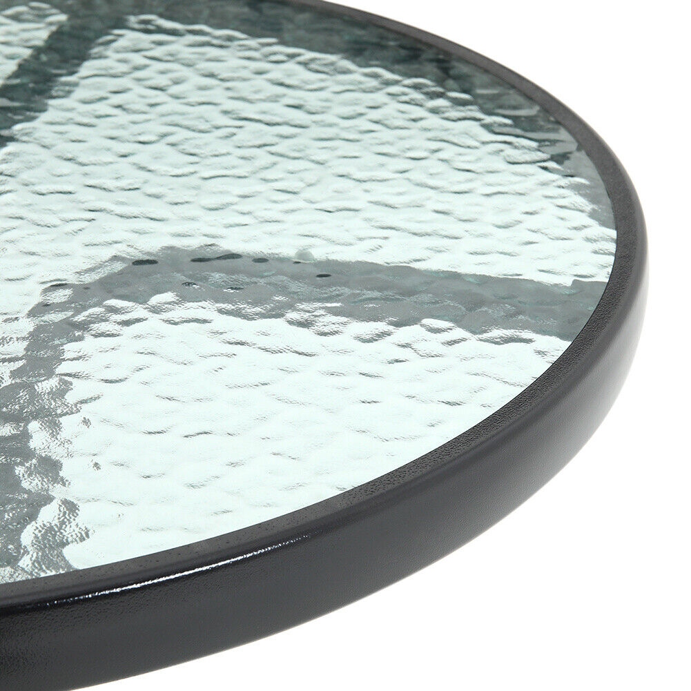 Black Gloss Glass Top Garden Table Outdoor Patio Bistro Coffee Table Metal Frame