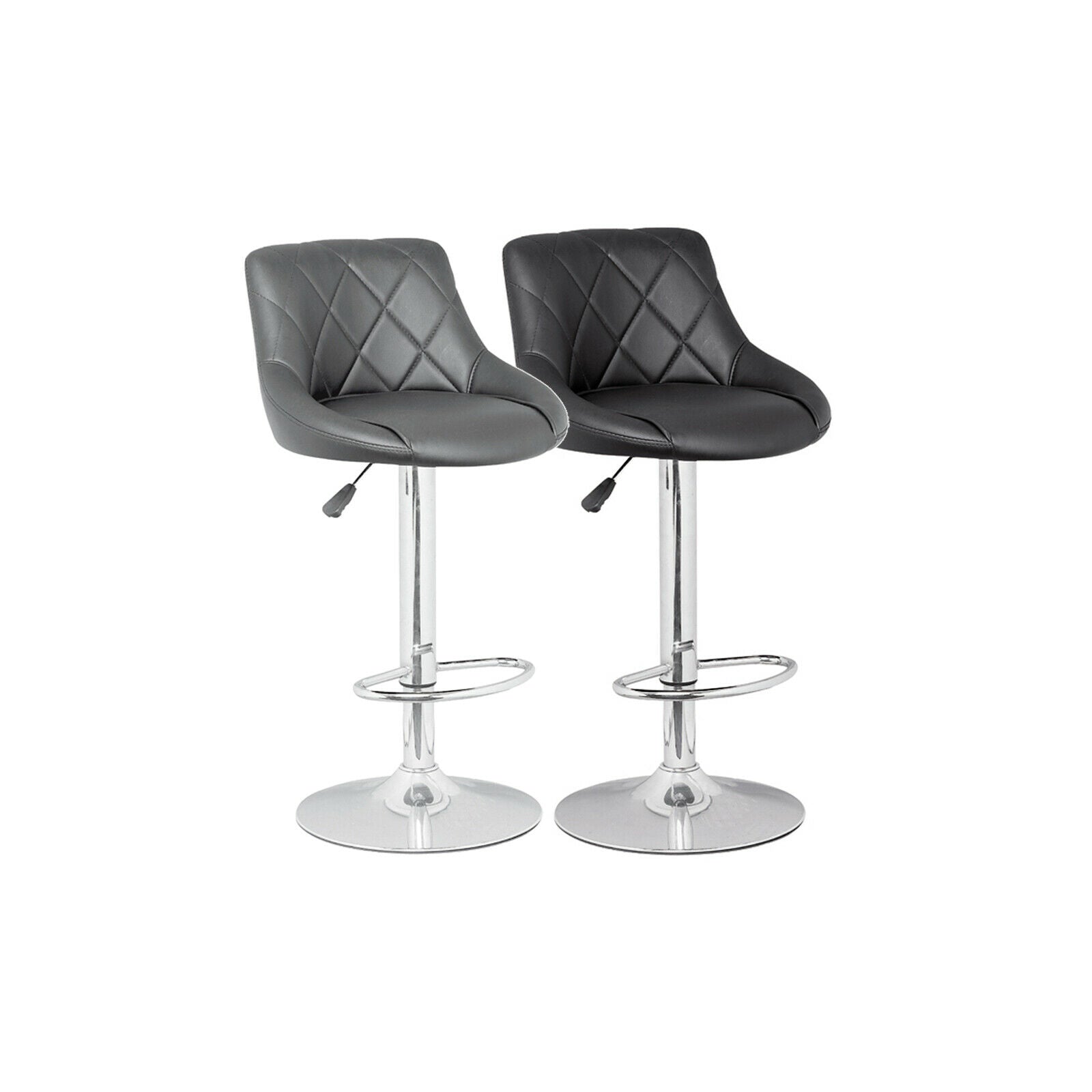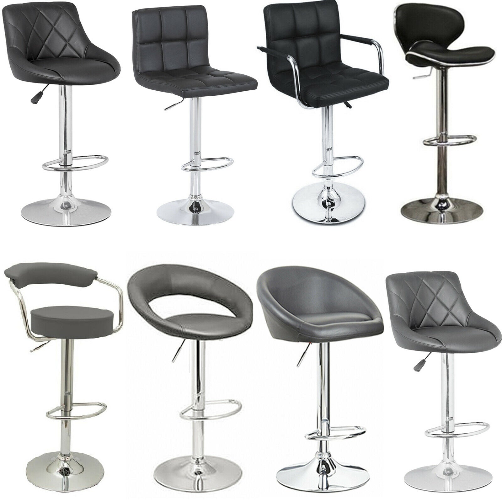 BLACK / GREY - Faux Leather Breakfast Bar Stool Swivel Kitchen Chrome Gas Lift