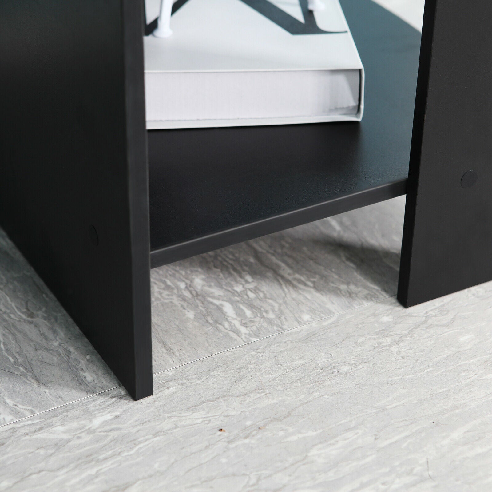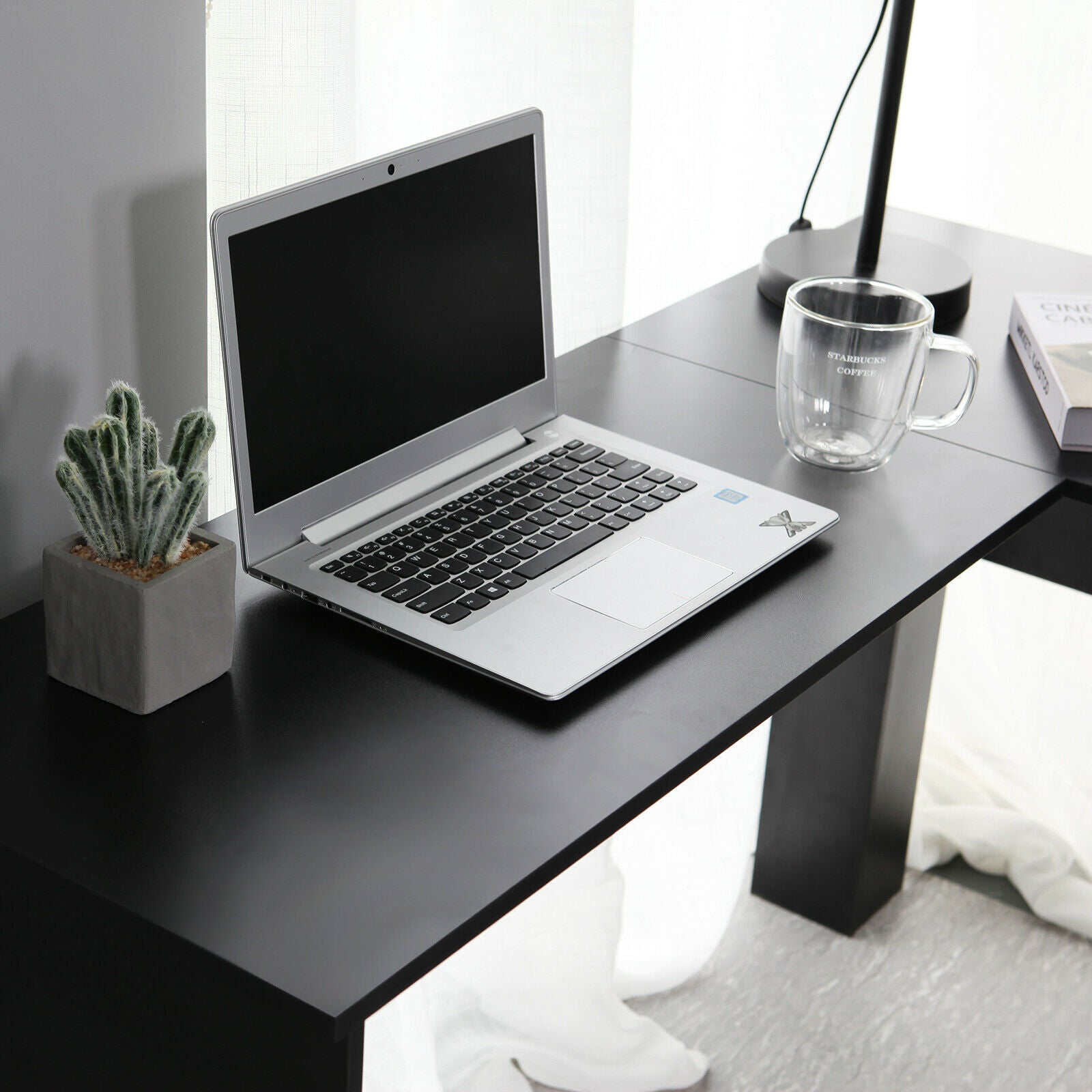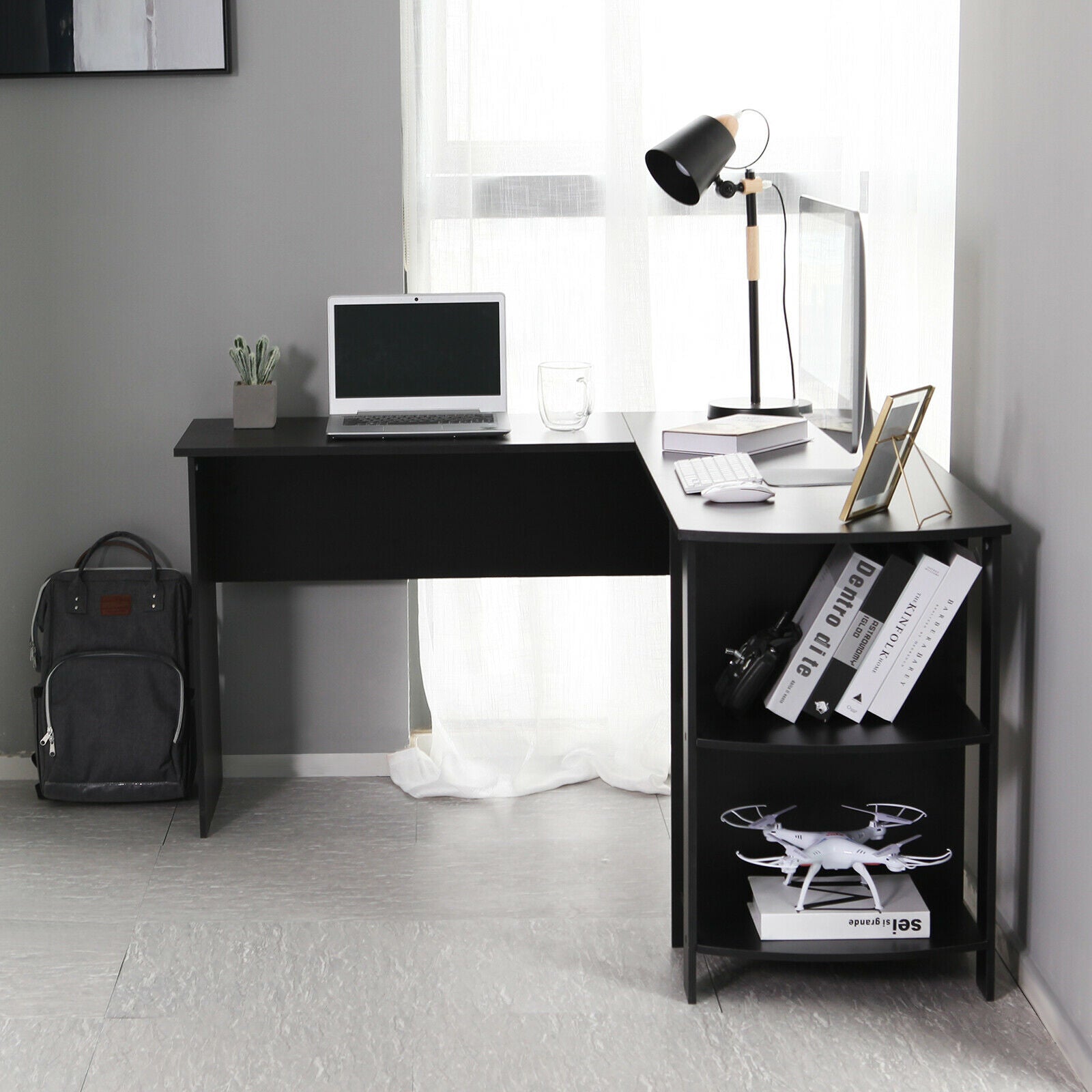 - L-shaped Design: This desk is remarkable for its L-shaped design that fits perfectly on the corner of any room. It's available in a choice of two most easy matching colors:Plain White and Classic Black, such a versatile office-furniture that can always satisfy you.