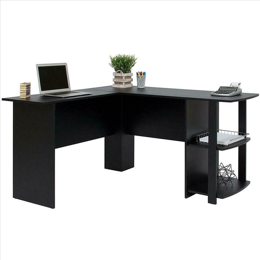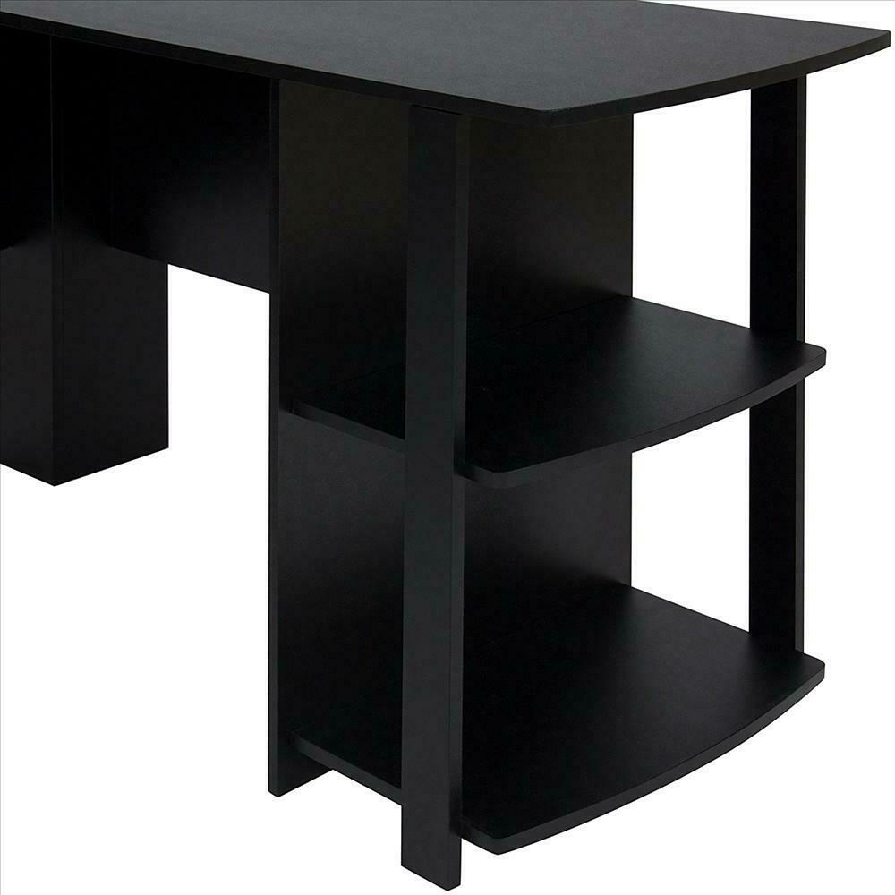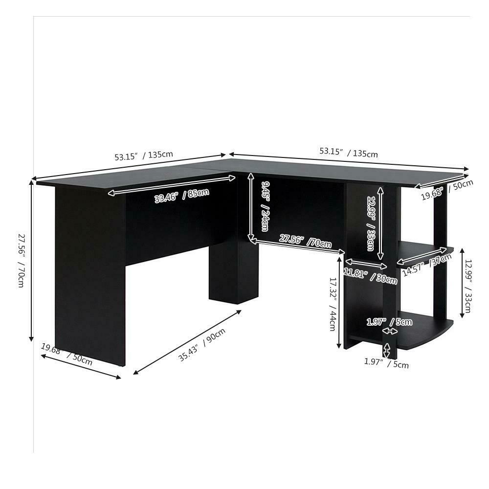 Black L-shaped Computer Desk Corner PC Table Workstation Home Office w/ Shelves