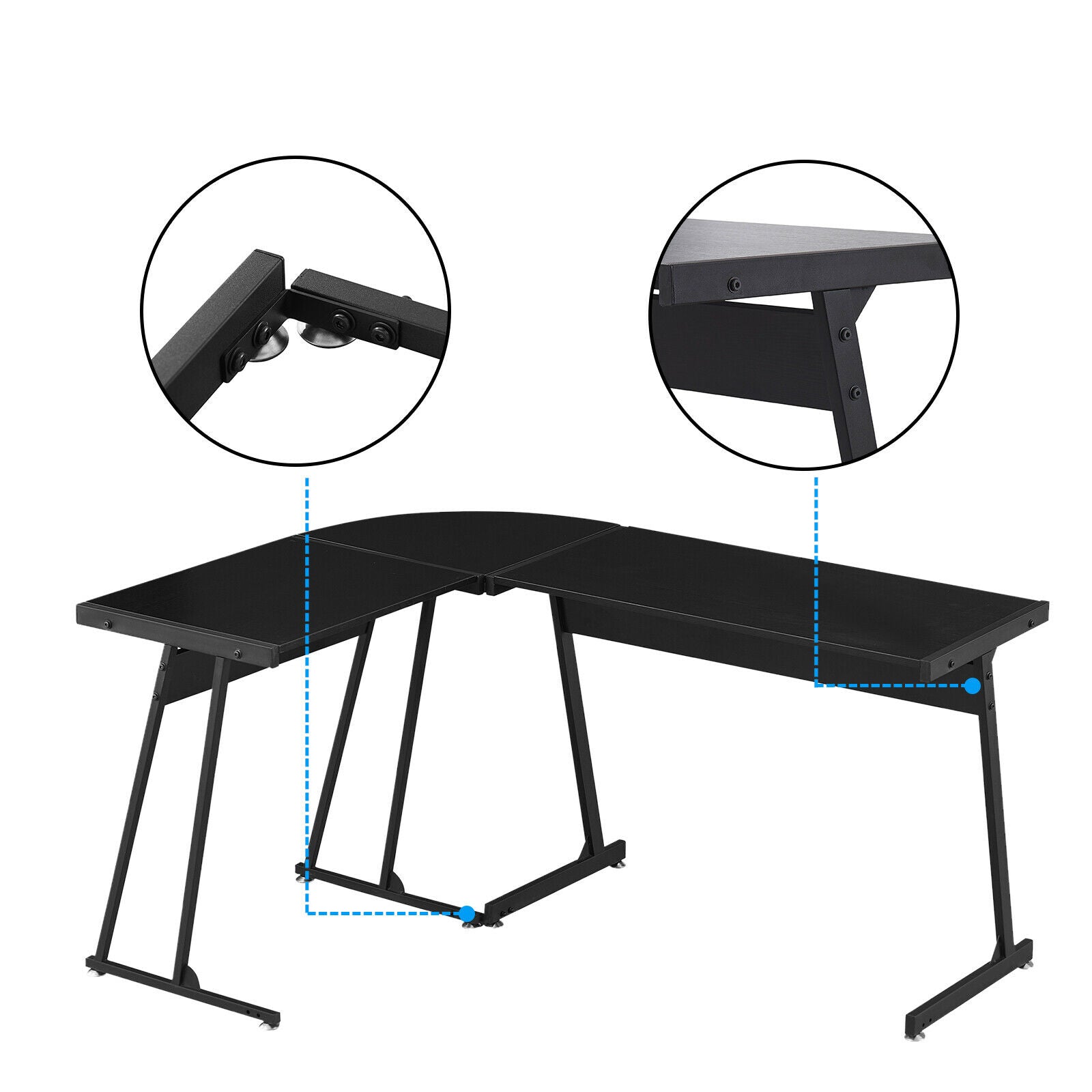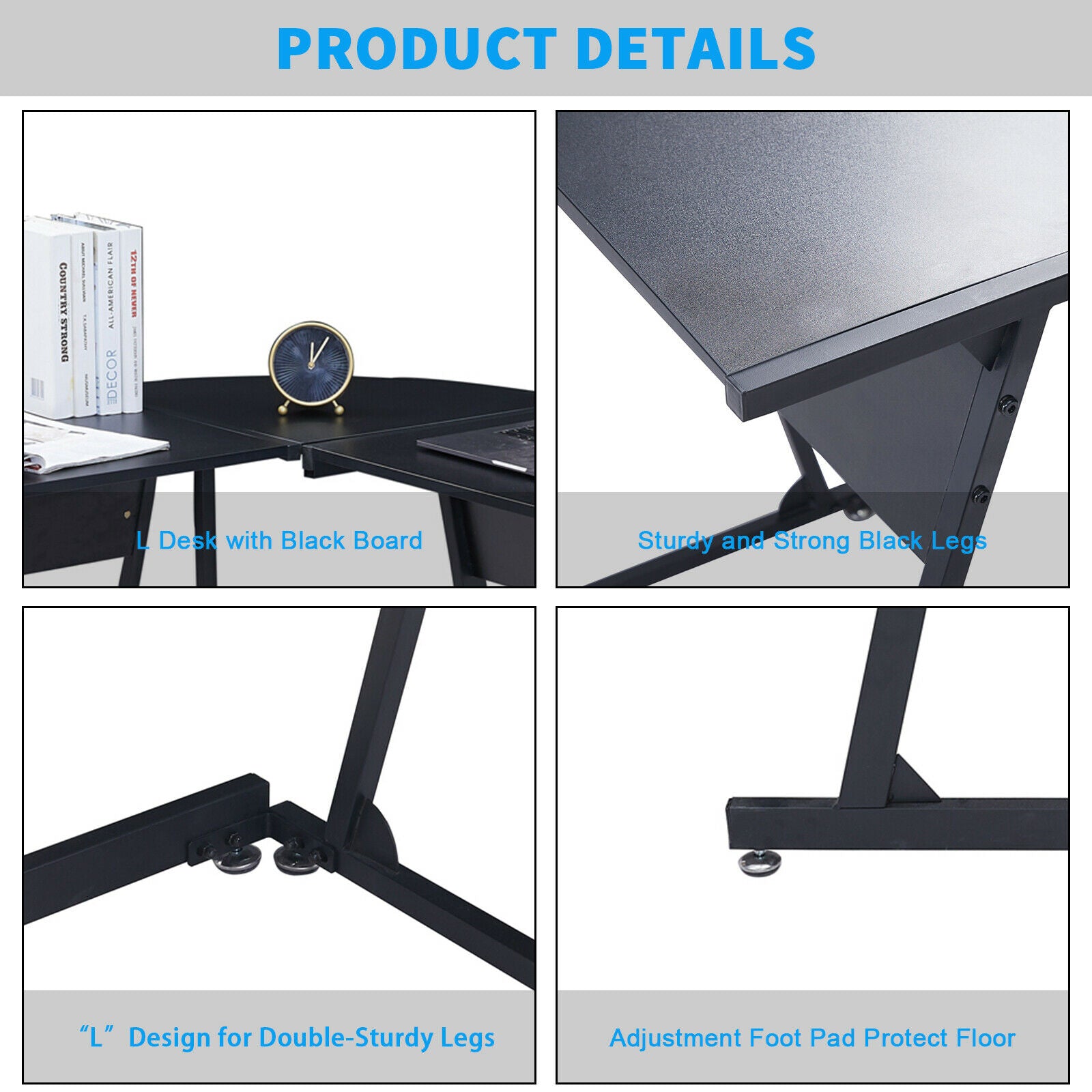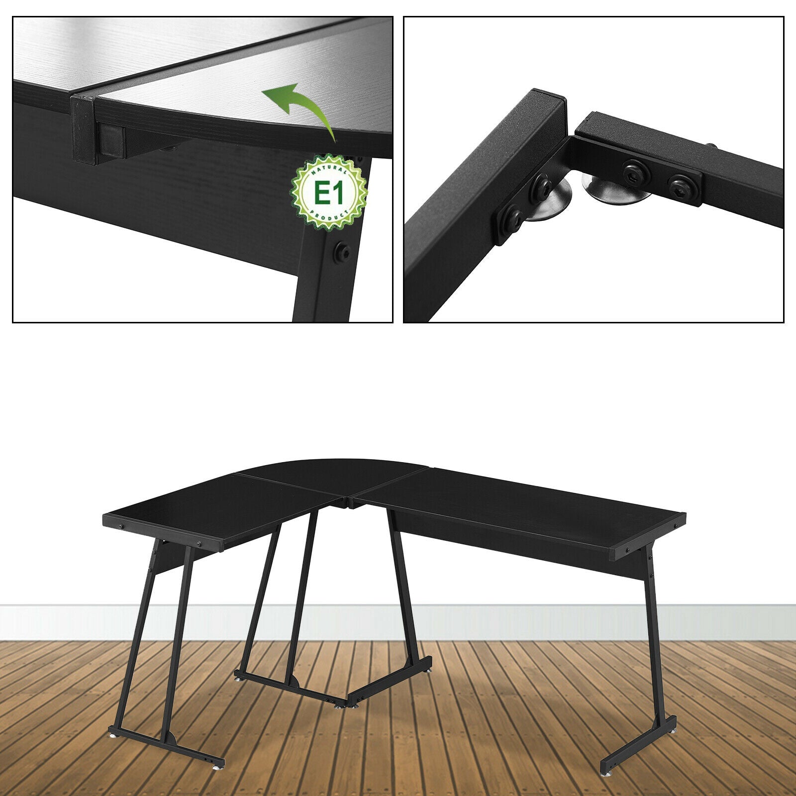 Black L-Shaped Corner Table Laptop Table Home Office Desk Wearable&Waterproof