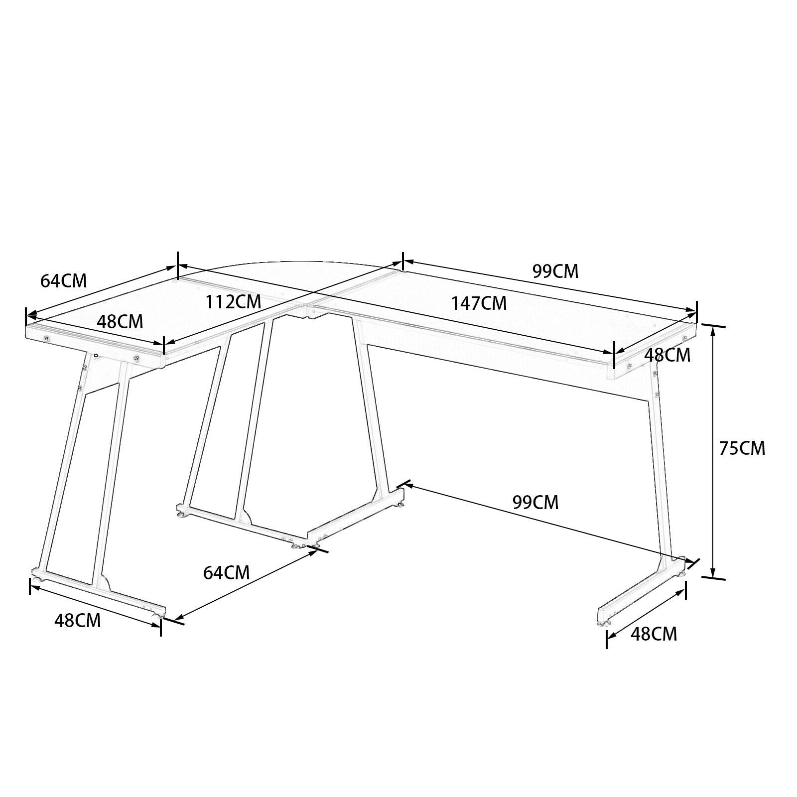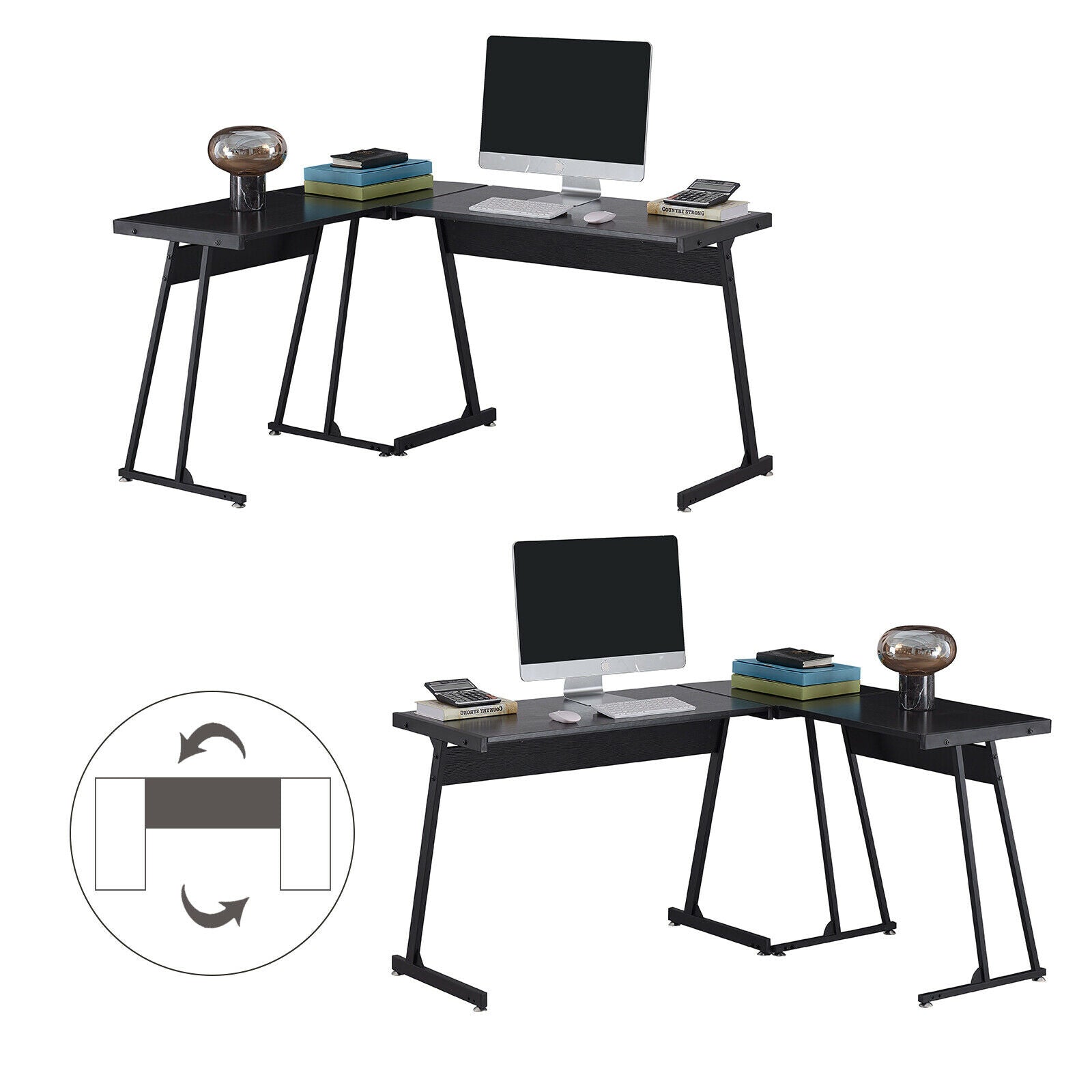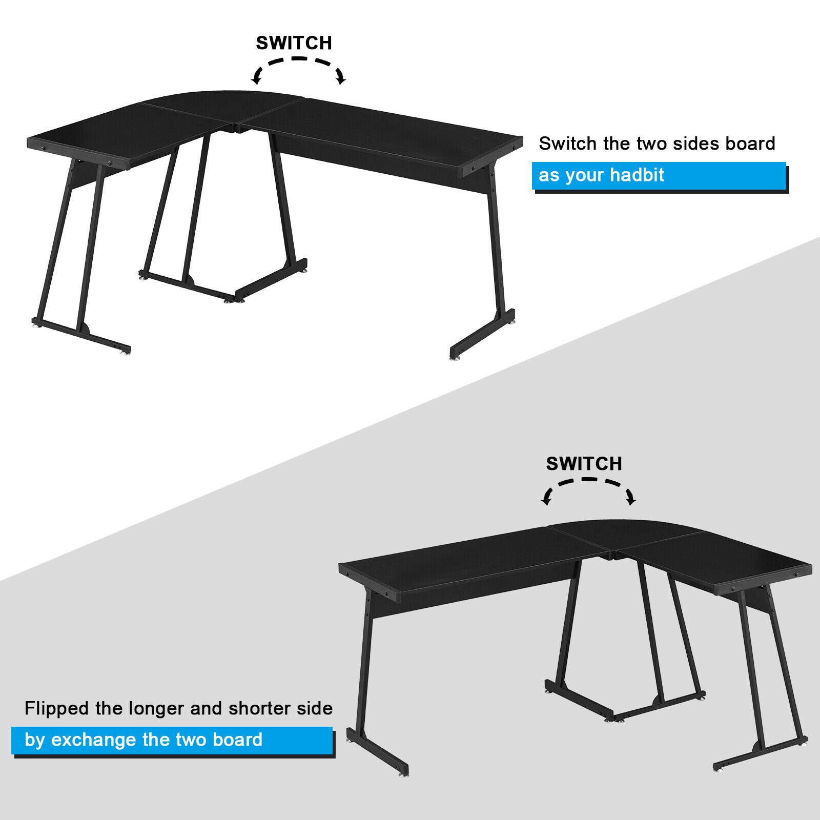 Black L-Shaped Corner Table Laptop Table Home Office Desk Wearable&Waterproof