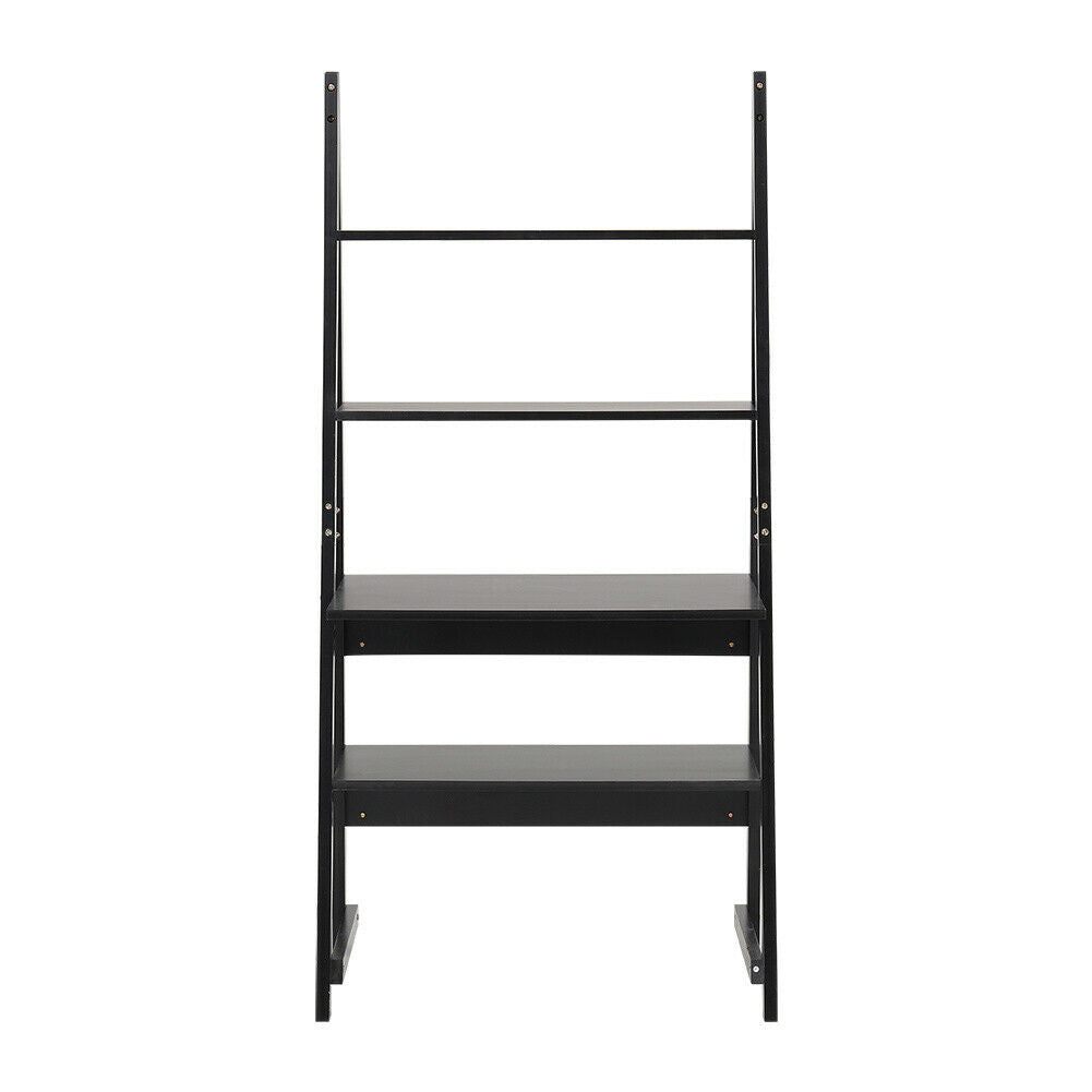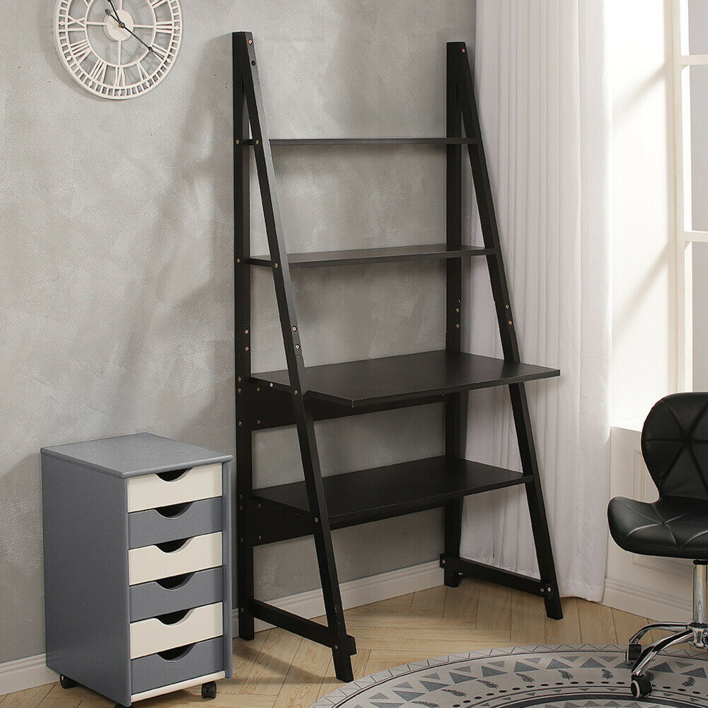 Black Ladder Computer Desk with Shelves Corner PC Table Workstation Home Office