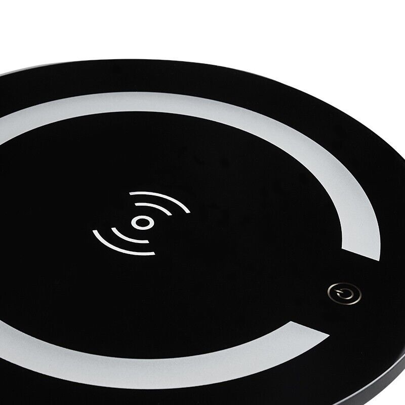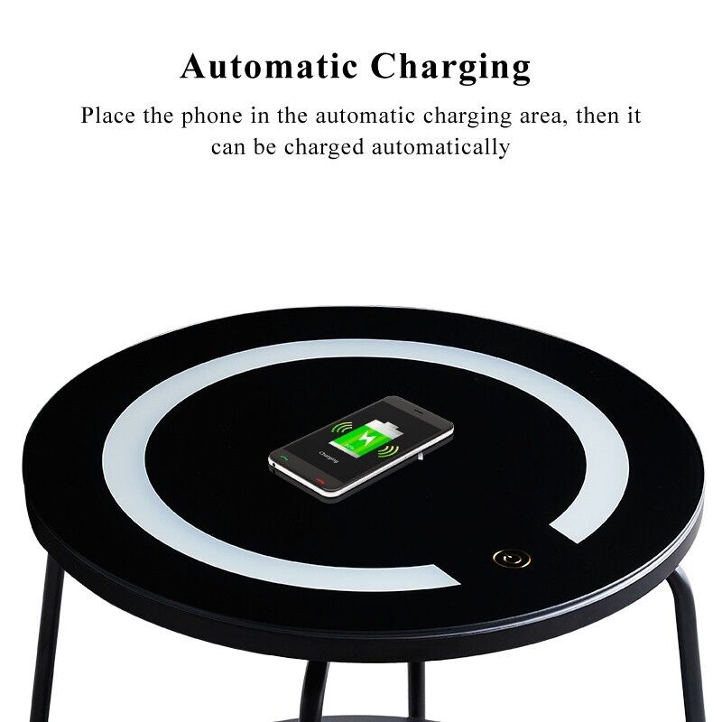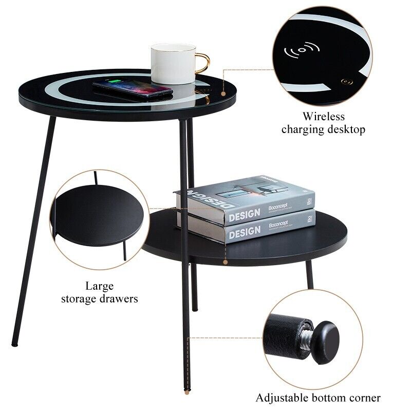 Black LED Bedside Table Chargeable with Large Top Modern Nightstand Living Room
