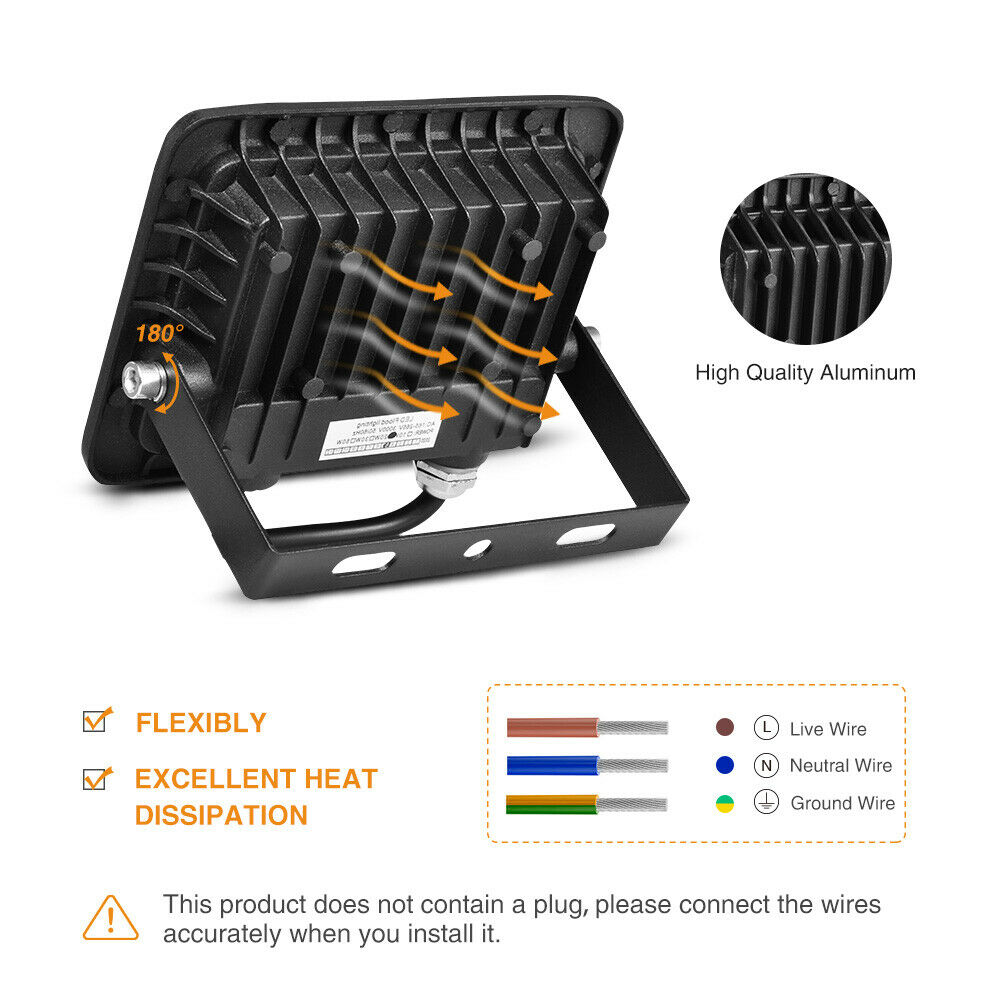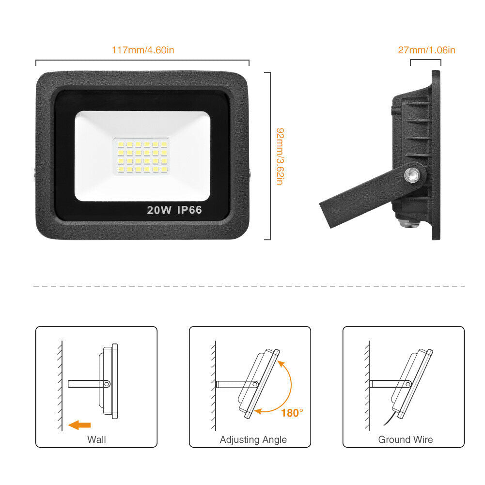 Black LED Floodlight Outside Light 20W Security Flood Lights Outdoor Garden UK