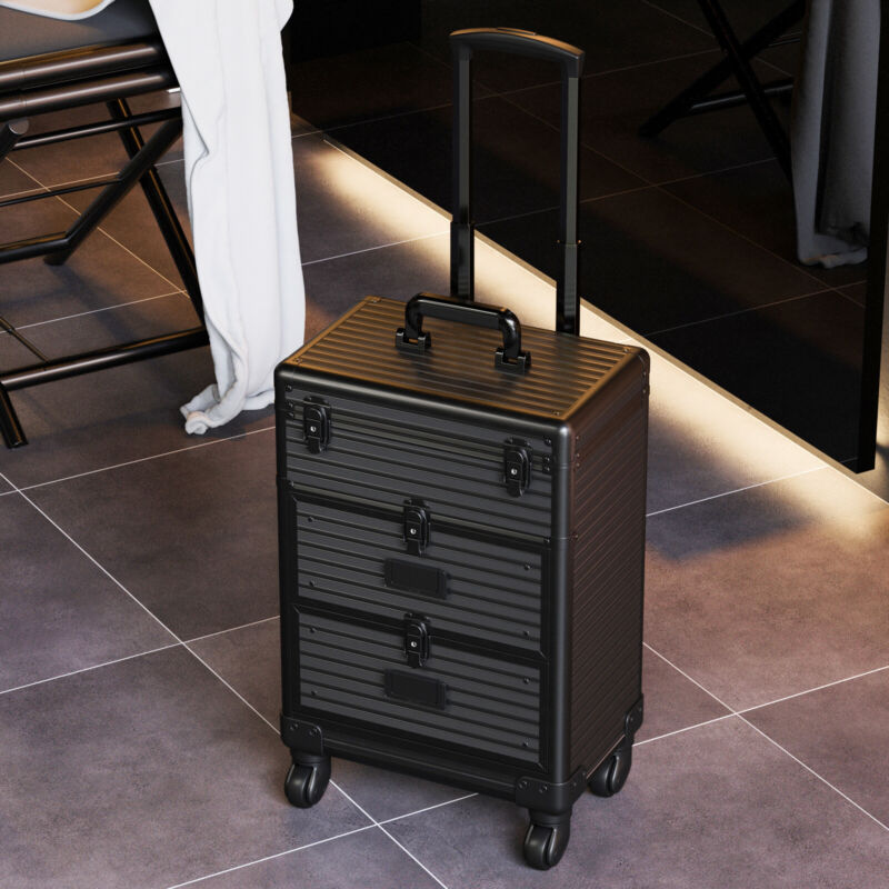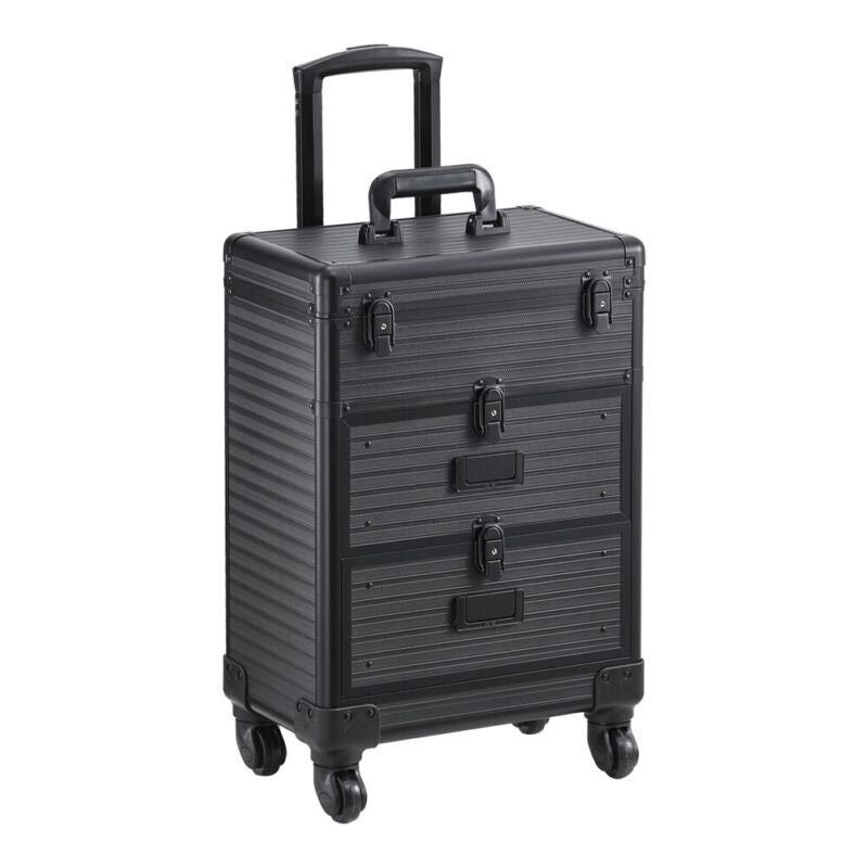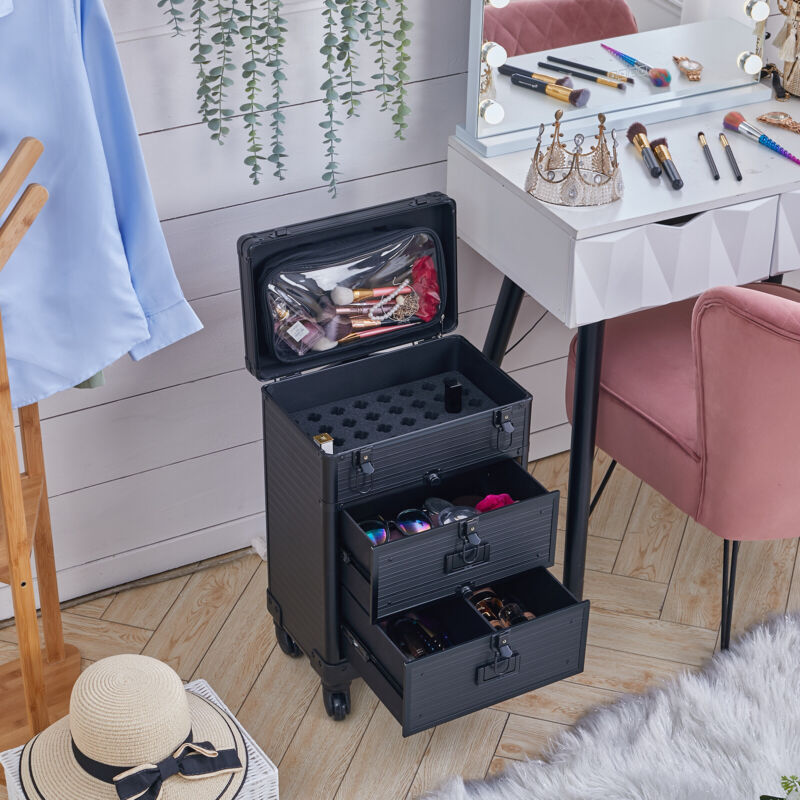 Black Mak Up Trolley Case Travel Beauty Vanity Hairdressing Case with Drawers UK
