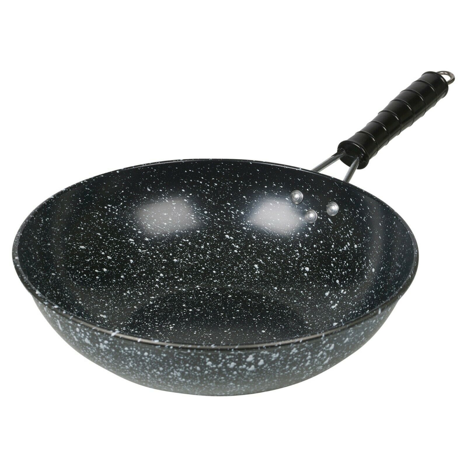 Black Marble Carbon Steel Induction Wok Chinese Non Stick Frying Pan 30cm 12"