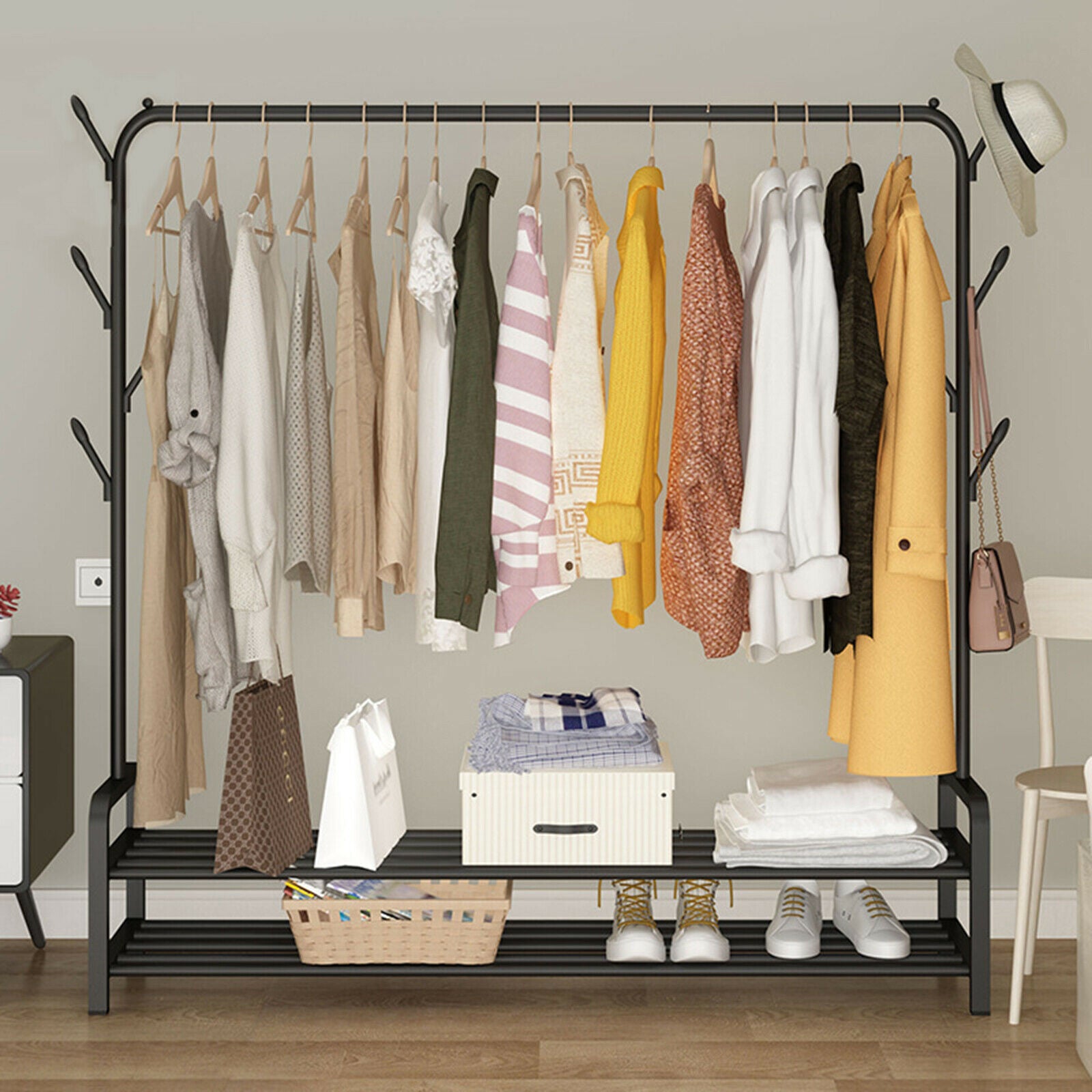 Black Metal Clothes Rail Heavy Duty Garment Hanging Rack Shop Use Display Stand