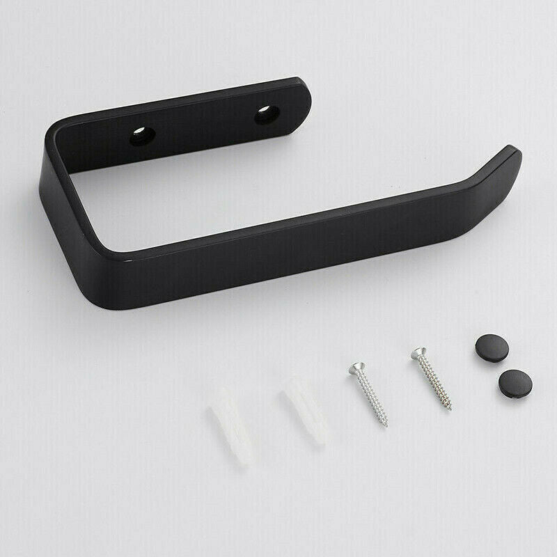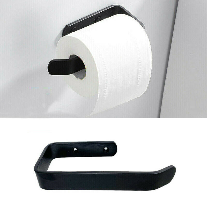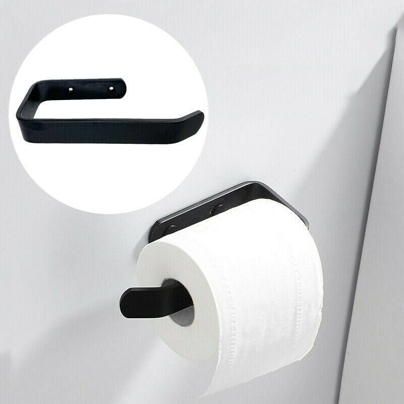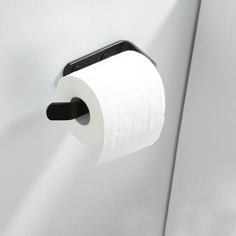 Black Modern Bathroom Wall Accessories Square Toilet Roll Paper Holder Rack UK (Black)