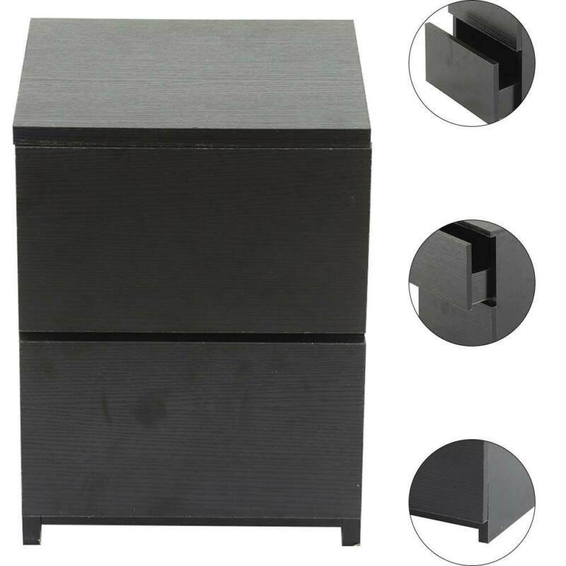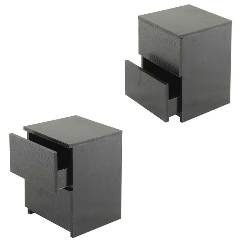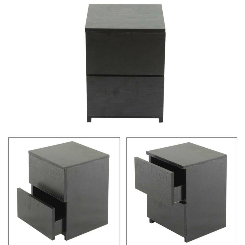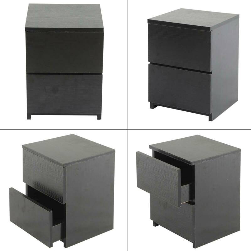 Black Modern Bedside Table Cabinet 2 Chest of Drawers Storage Nightstand Bedroom