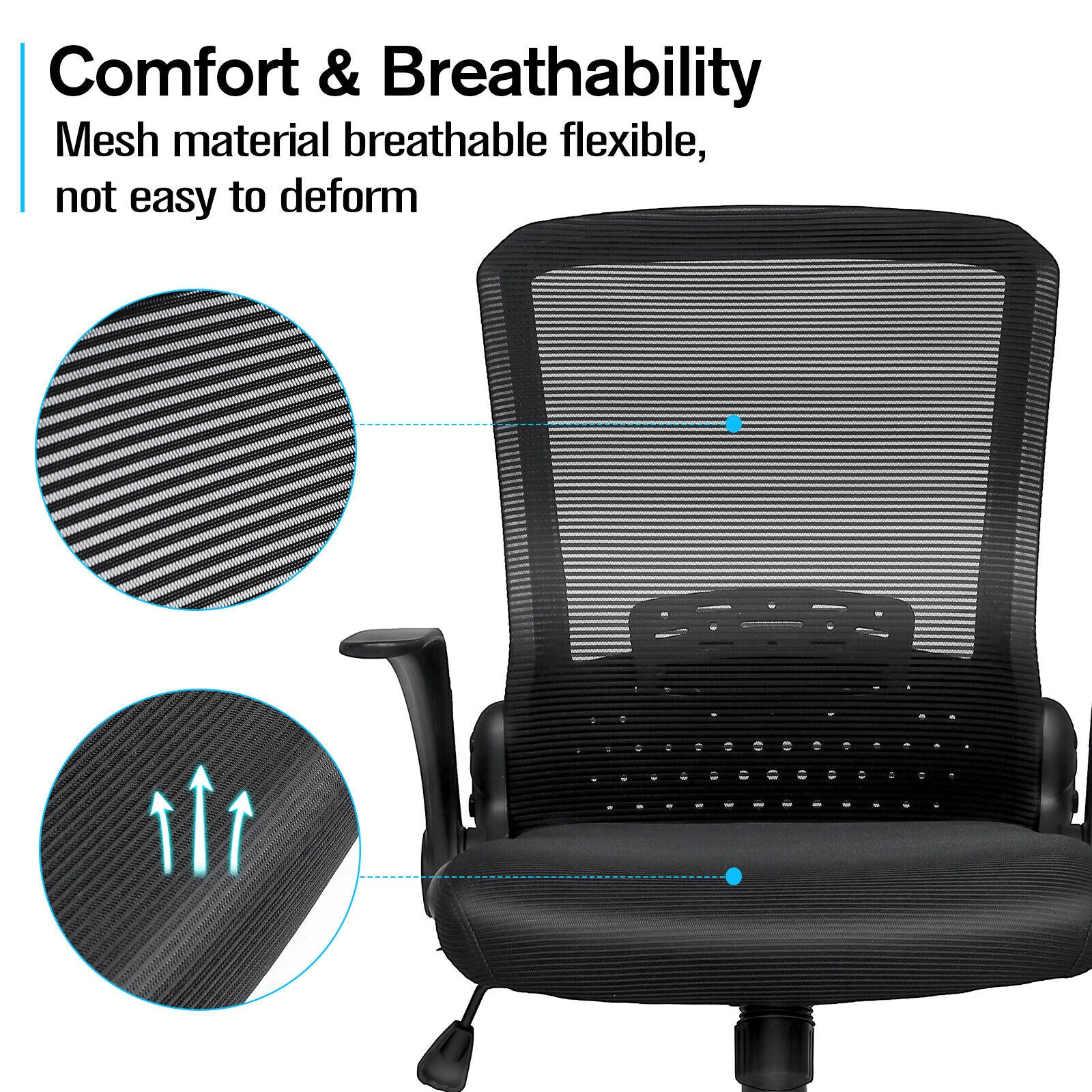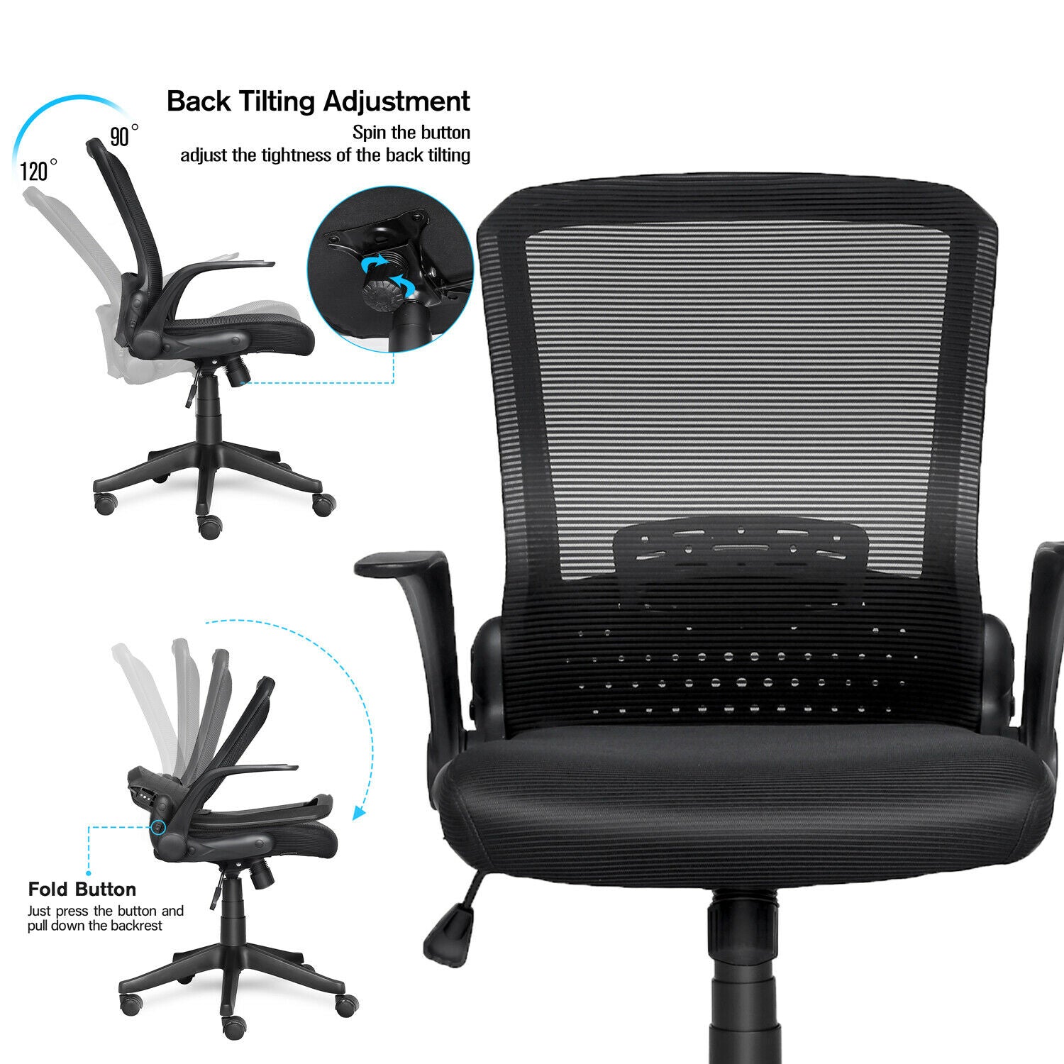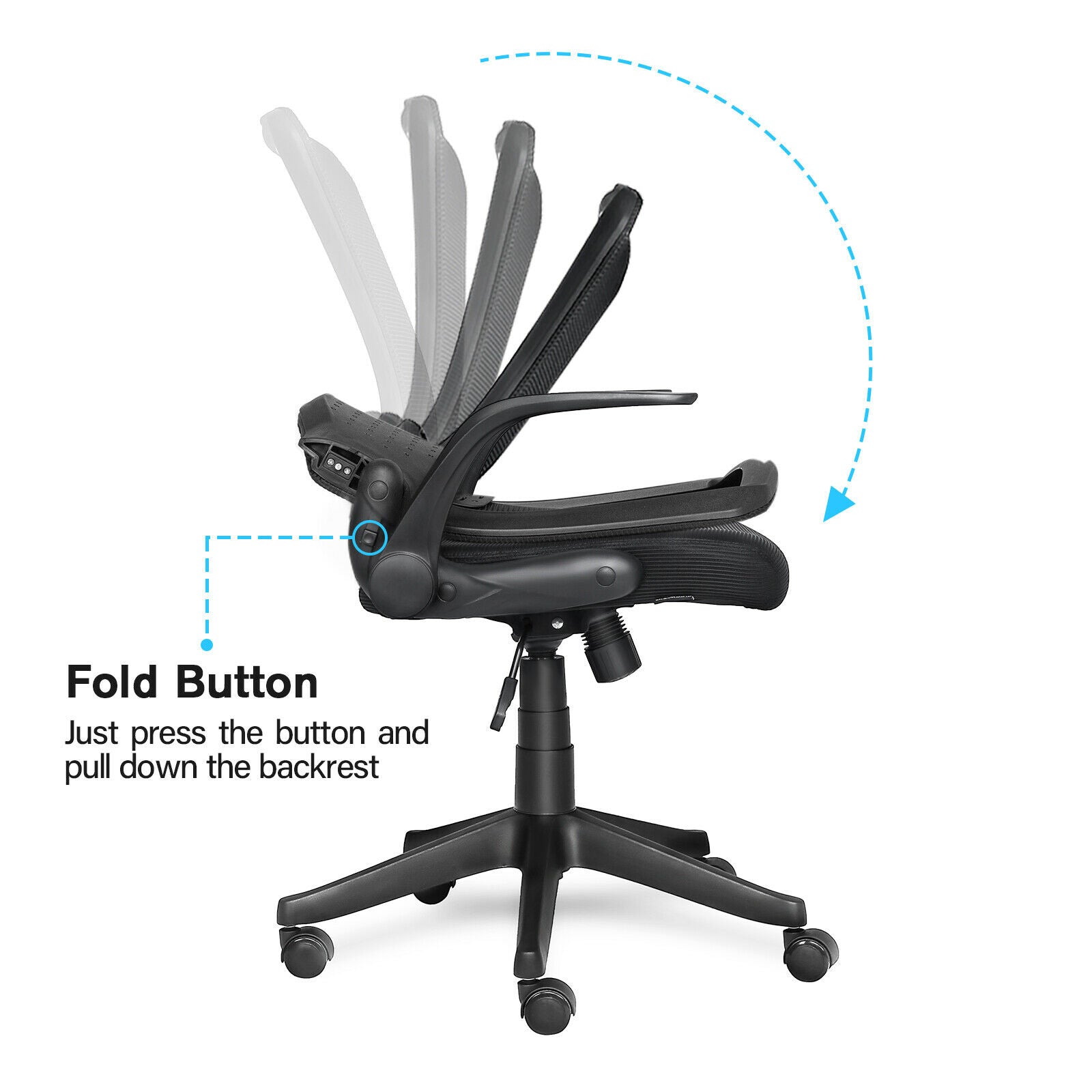 Black Office Mesh Chair Computer Desk Task Study Folding Adjustable Back Arms