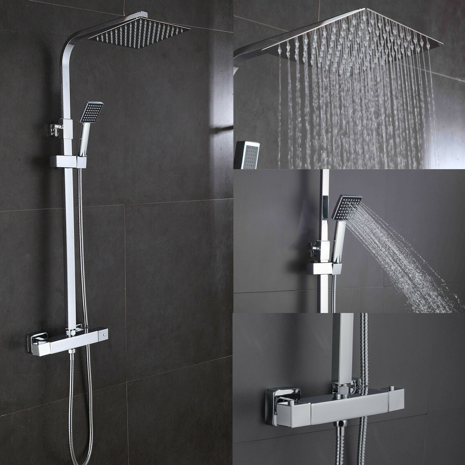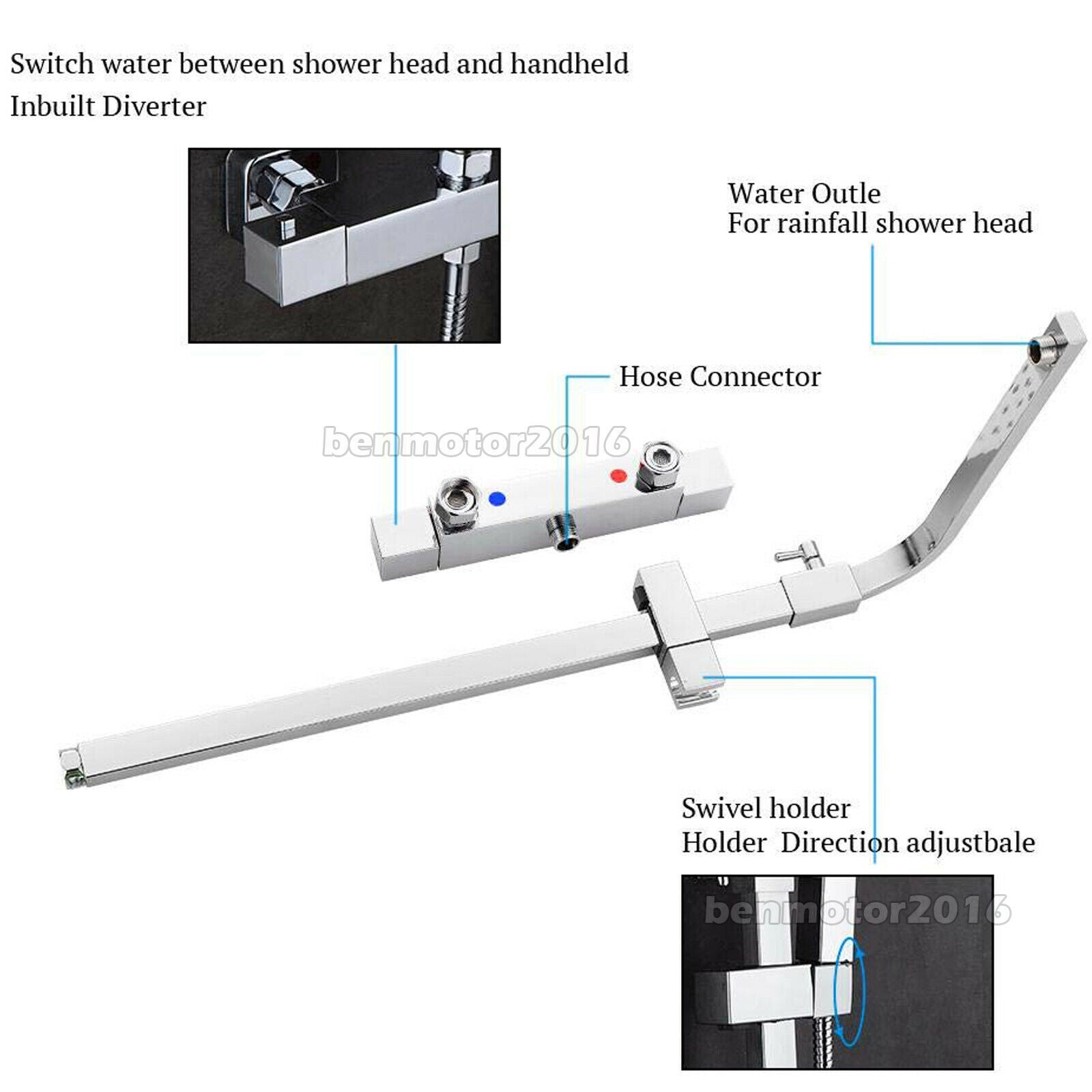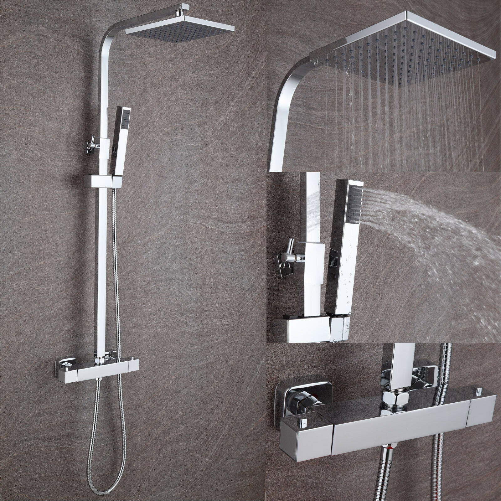 Black Shower Set Bathroom Thermostatic Mixer Square Twin Head Exposed Valve Bar