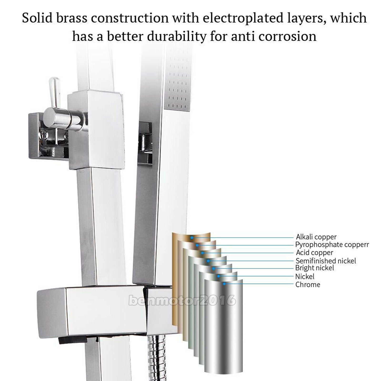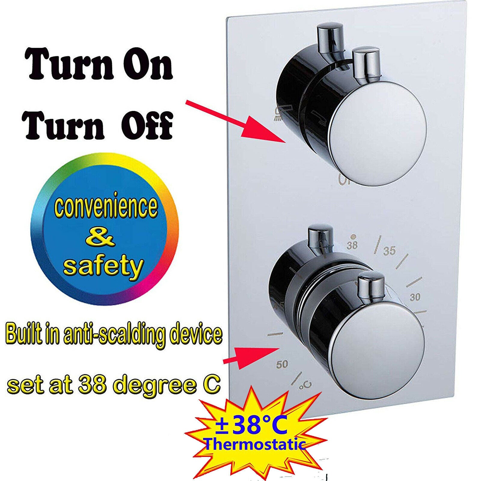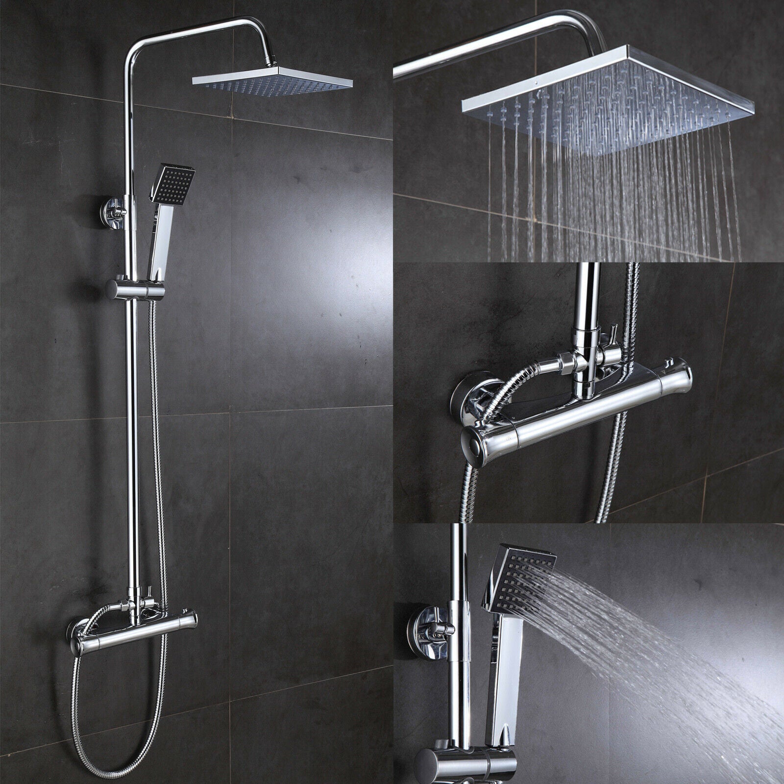 Black Shower Set Bathroom Thermostatic Mixer Square Twin Head Exposed Valve Bar