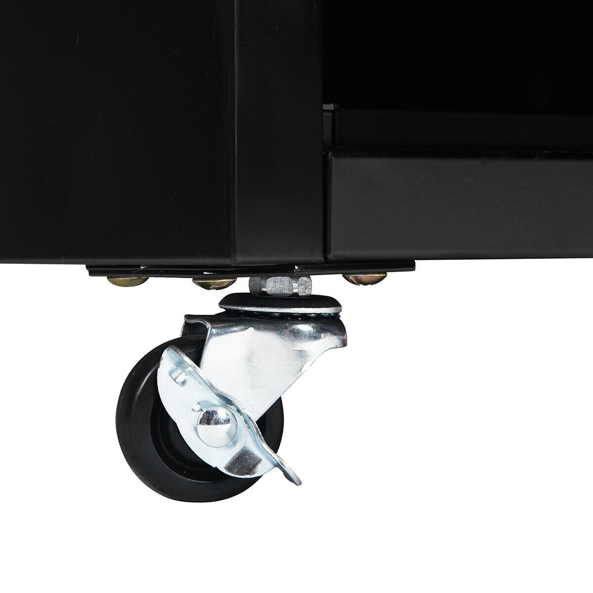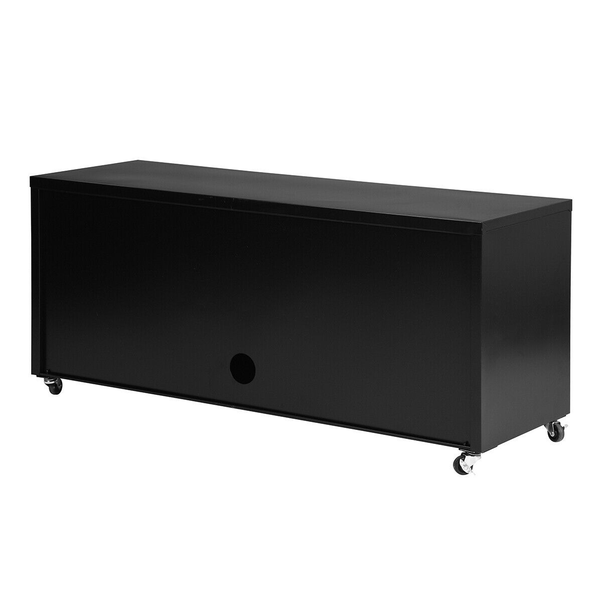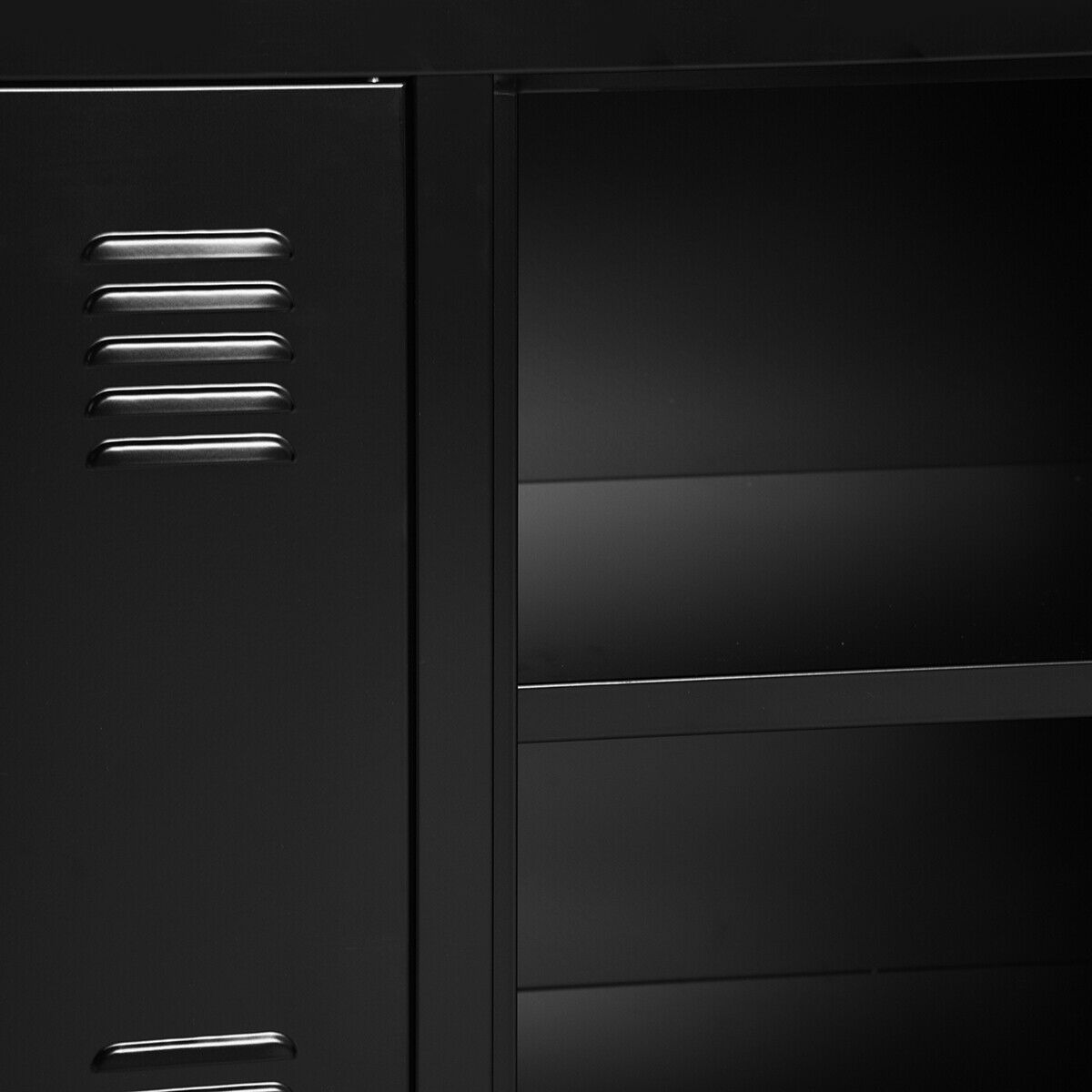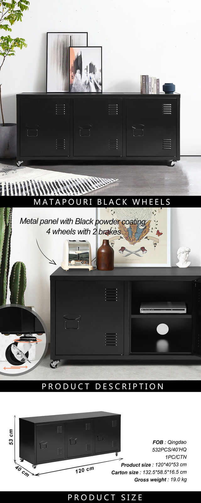 Black Sideboard 3 Door Cupboard Modern Metal Storage Cabinet TV Stand ww/ Wheels