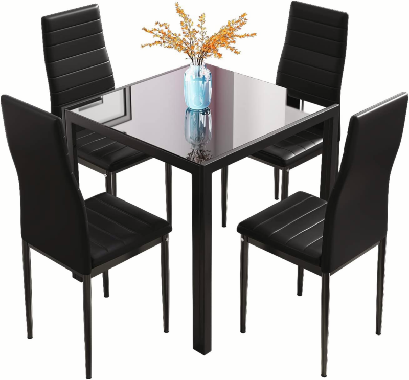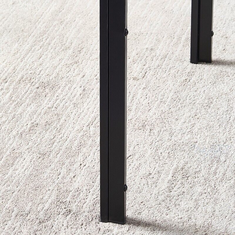 Black Square Dining Table for 2-4 Small Space Glass Tabletop & Metal Legs Modern
