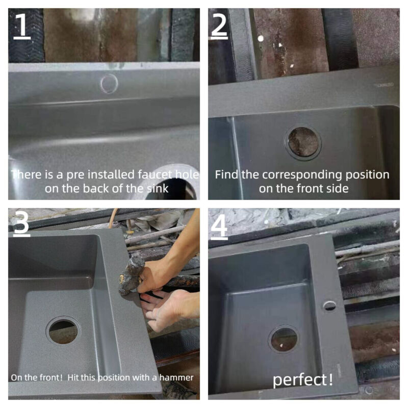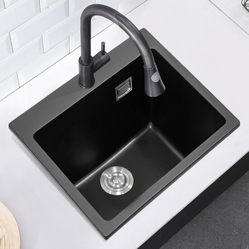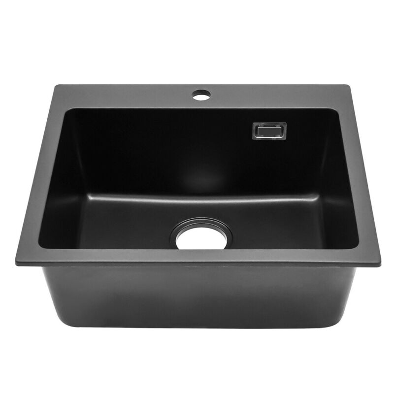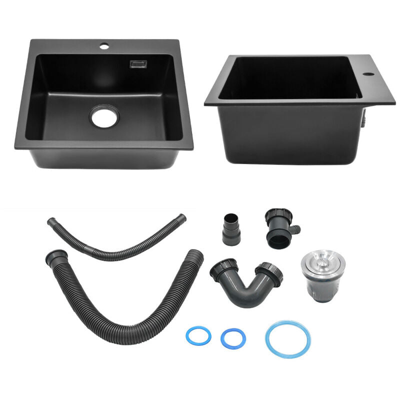 Black Stone Resin Single Bowl Kitchen Sink Undermount w/ Drainer Waste Kit 550mm
