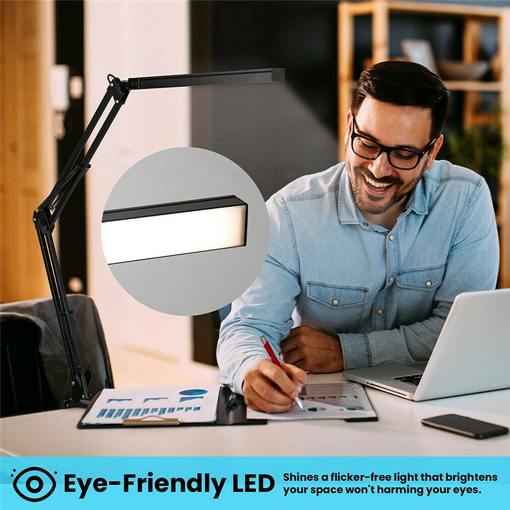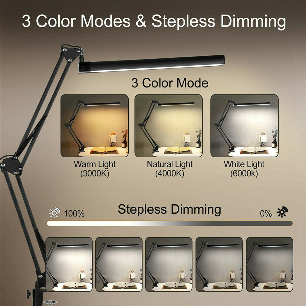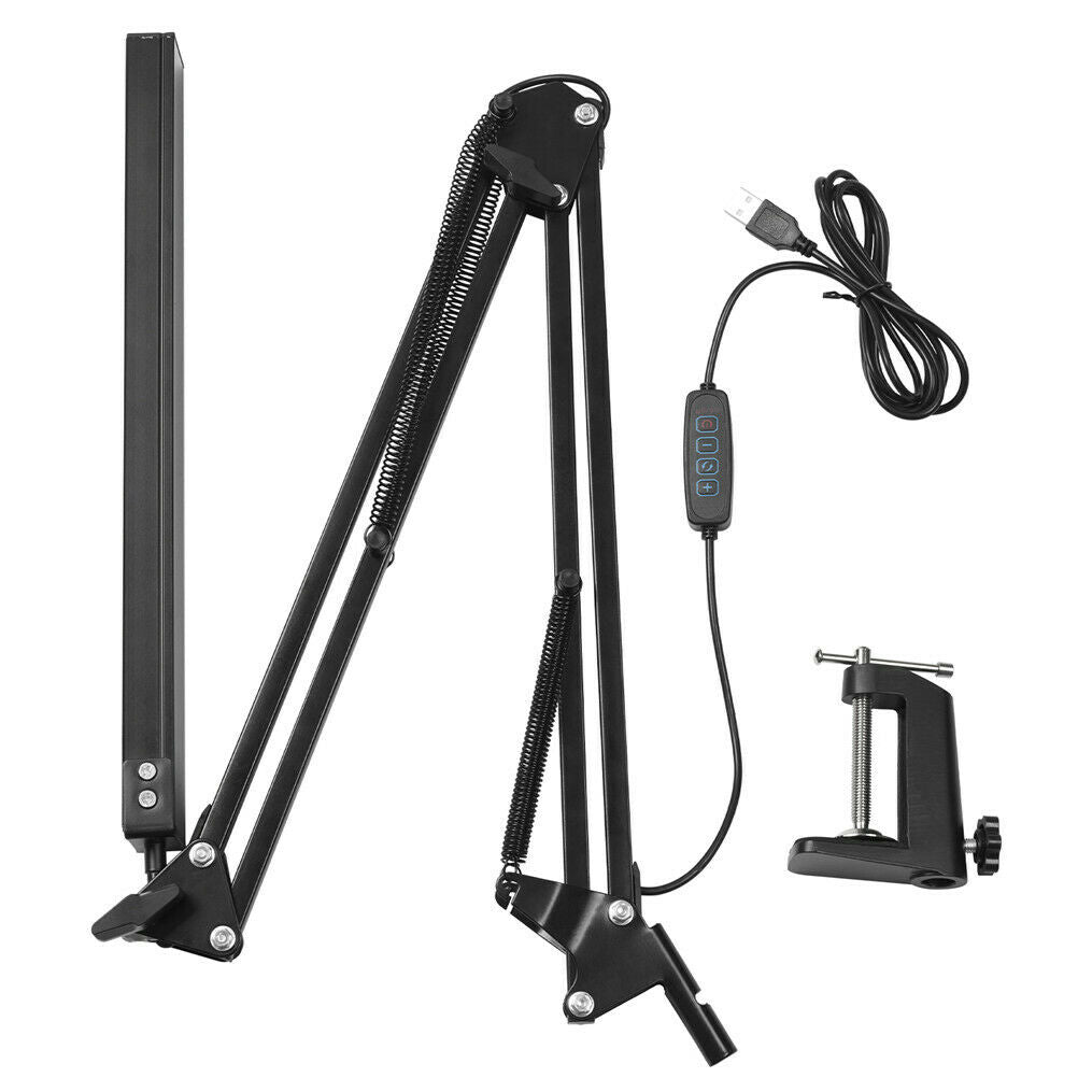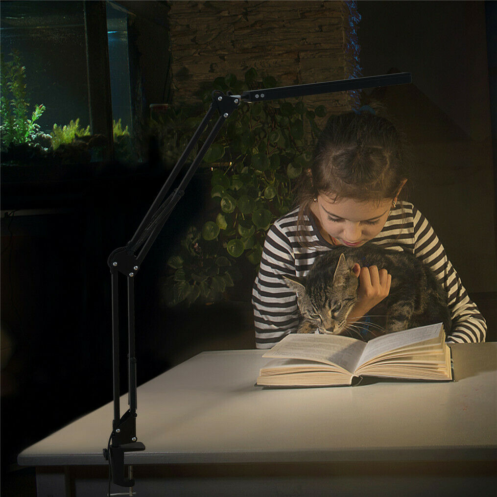 Black Tall Adjustable Clamp On Desk Light Modern Craft Lighting LED 10W Bulb