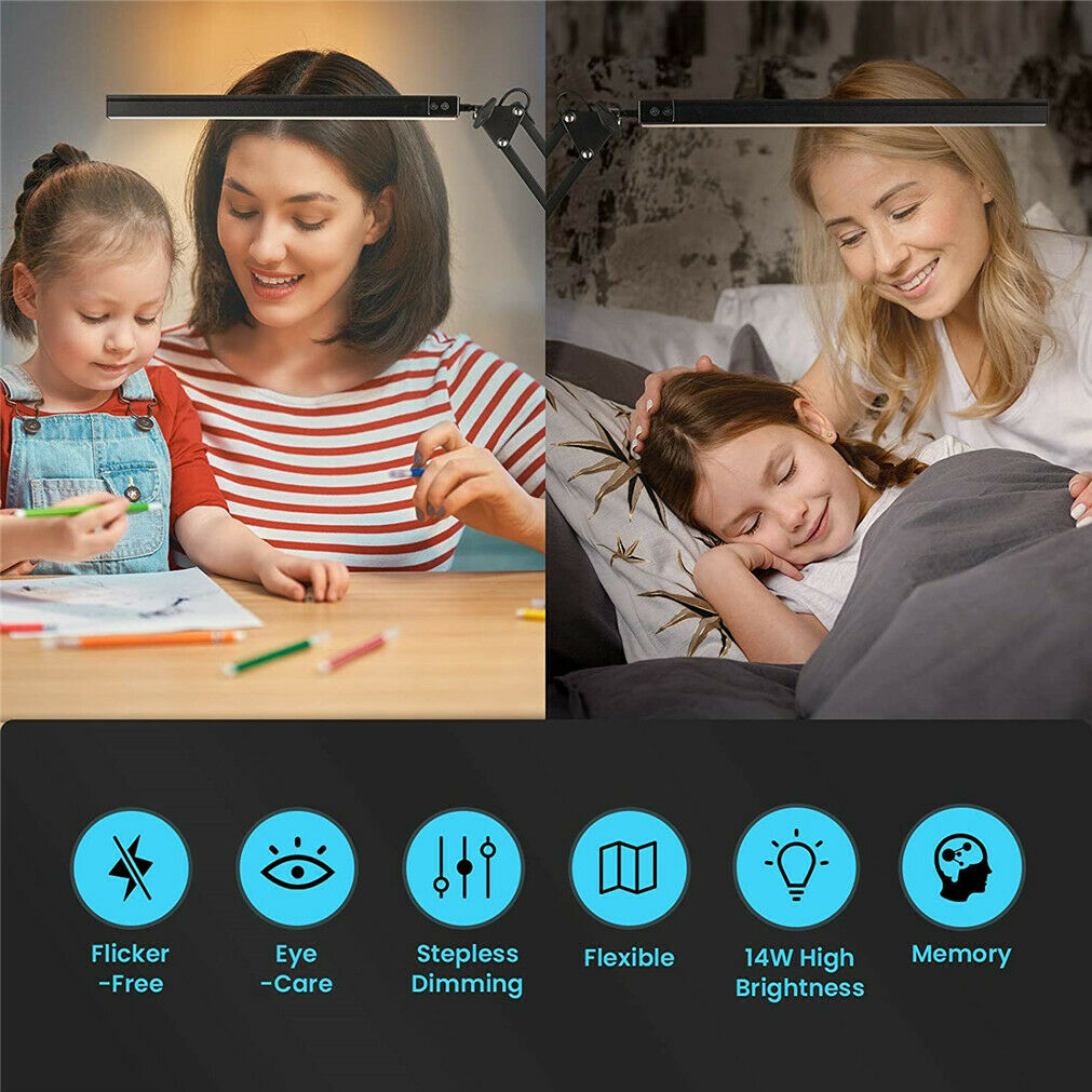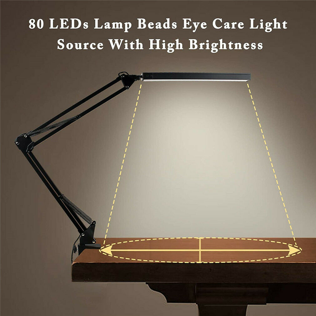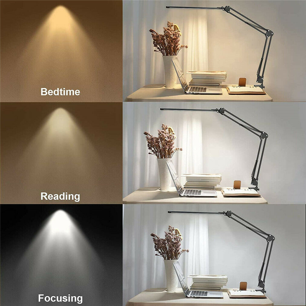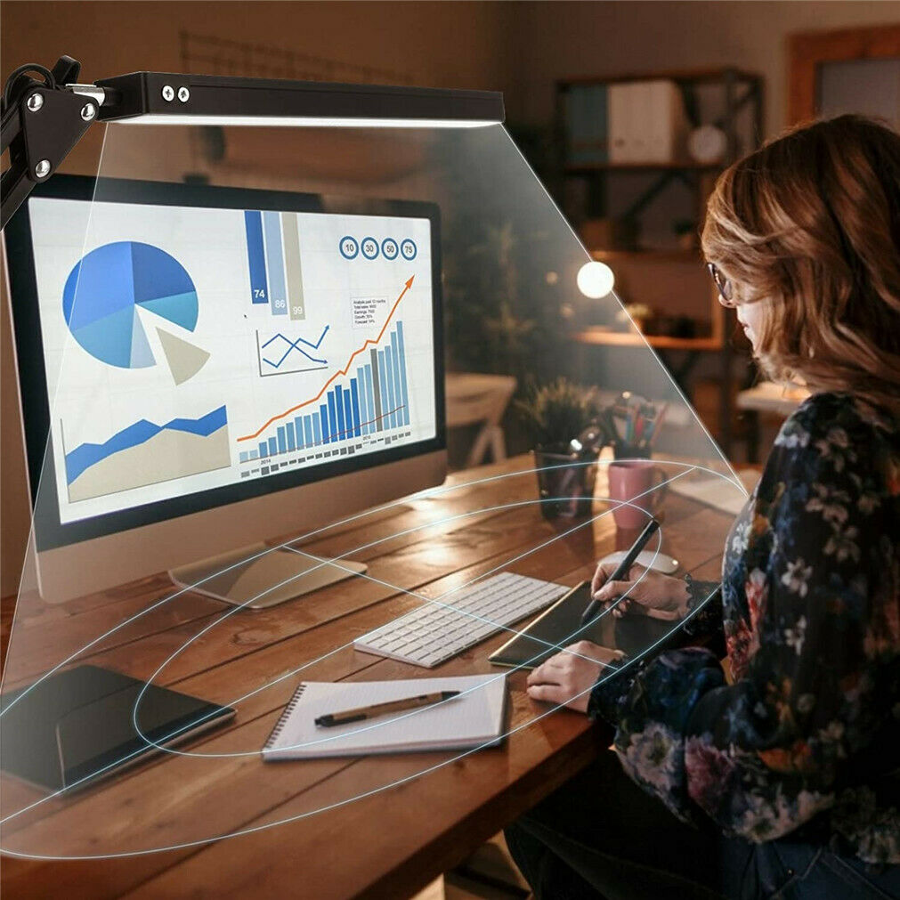 Black Tall Adjustable Clamp On Desk Light Modern Craft Lighting LED 10W Bulb