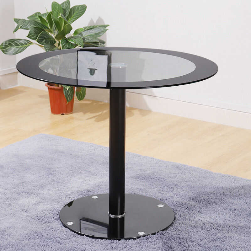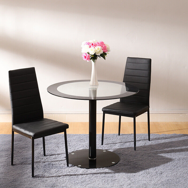 Black Tempered Glass Round Dining Table Bistro Kitchen Set 2/4pcs Chairs Seat