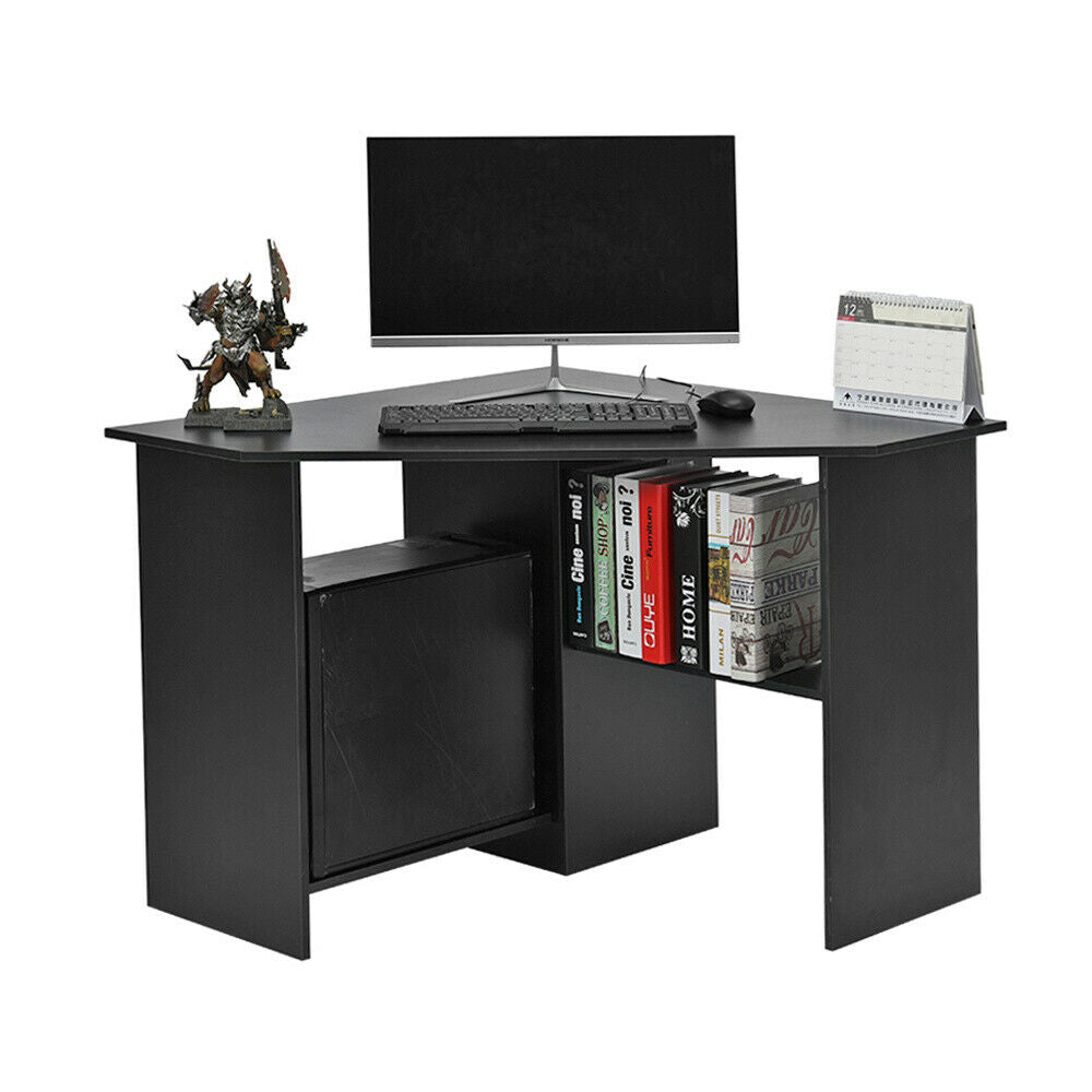 Black/ White Corner Computer Desk PC Laptop Table Book Shelves Home Study Office