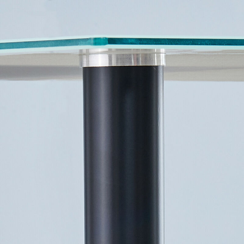 Black White Dining Table Tempered Glass Top Metal Legs Kitchen Dining Room Home