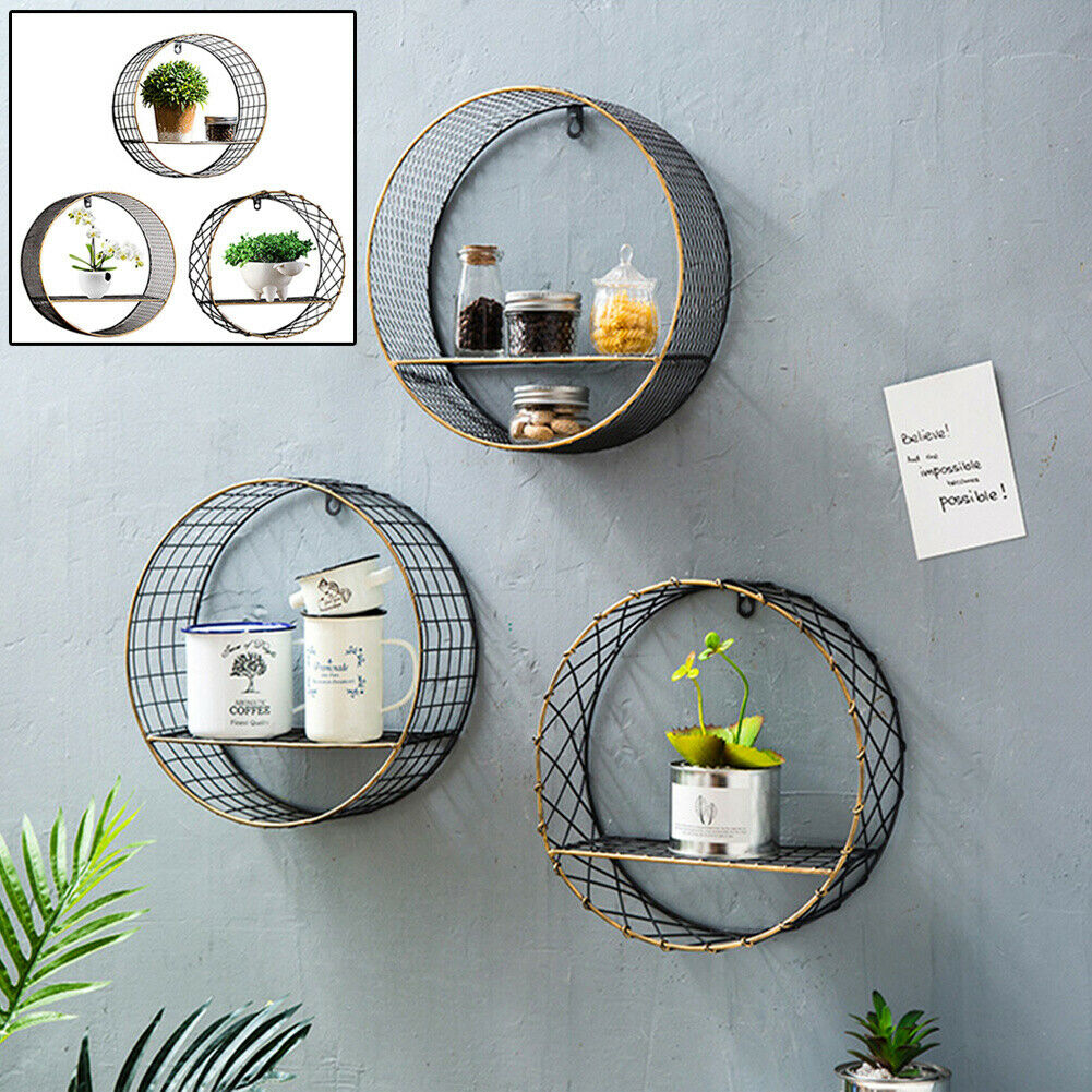 Black Wire Wall Unit Retro/Industrial Style Metal Shelf Rack Storage Display NEW