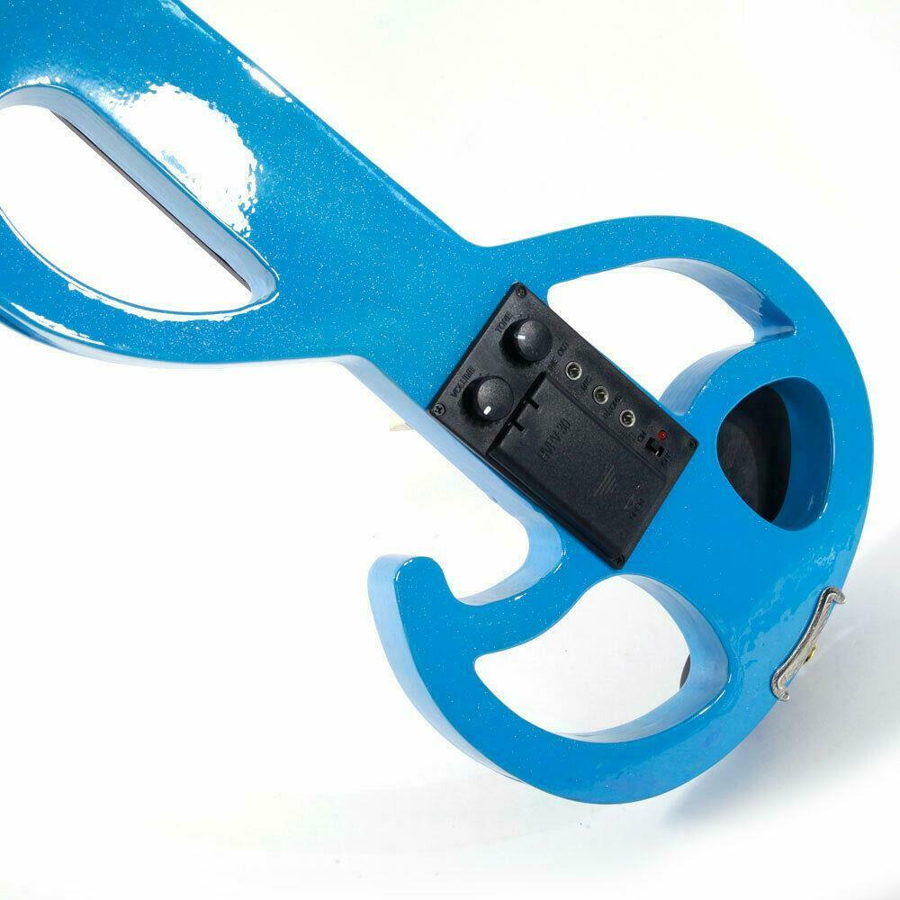 Blue 4/4 Electric Silent Violin Fiddle w/Case Bow Rosin Earphone Connecting Line