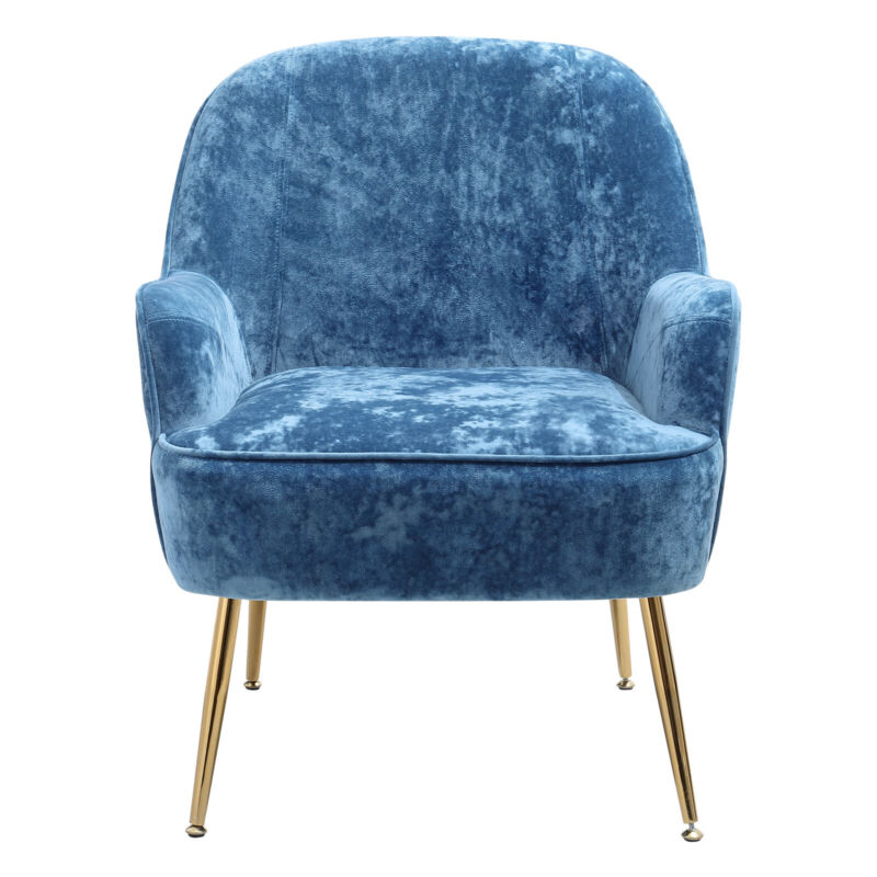 Blue Crushed Velvet Tub Armchair Wingback Sofa Accent Chairs With Golden Legs UK