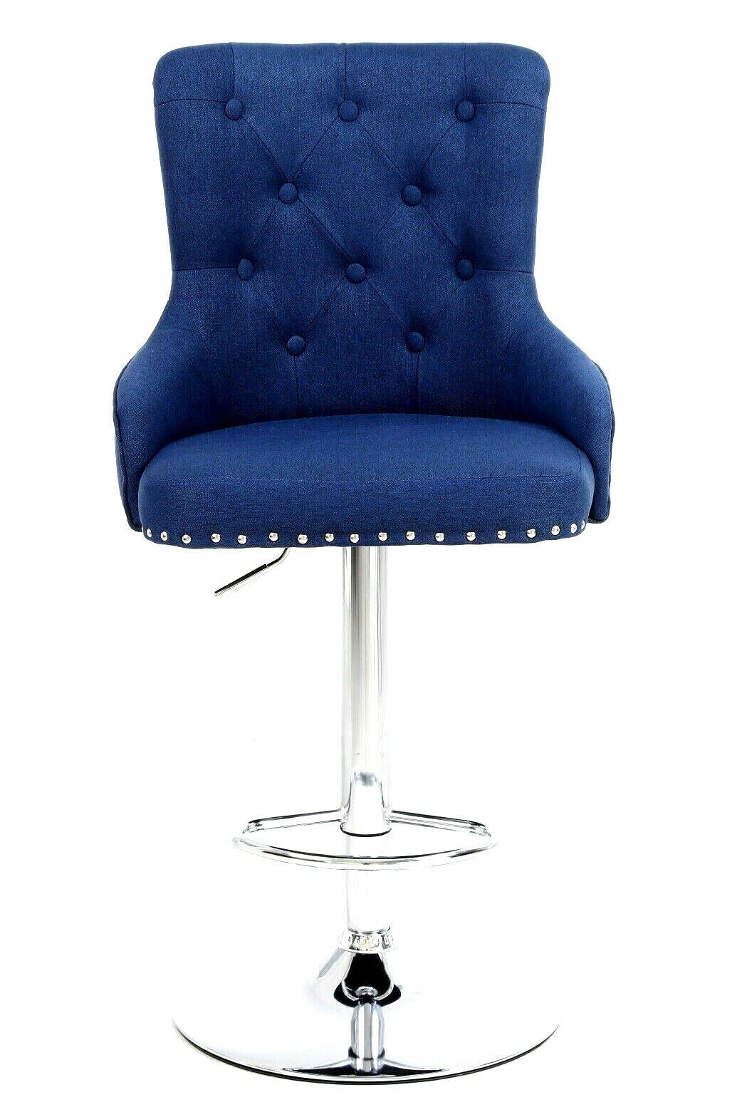 Blue Linen Button Detail Premium Monteray Bar Stool (BLUE)