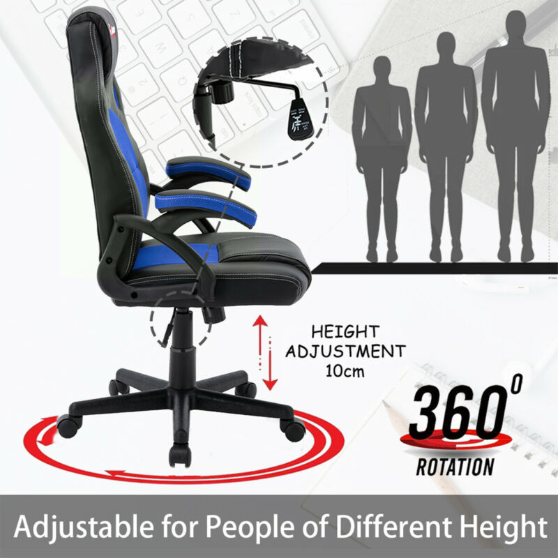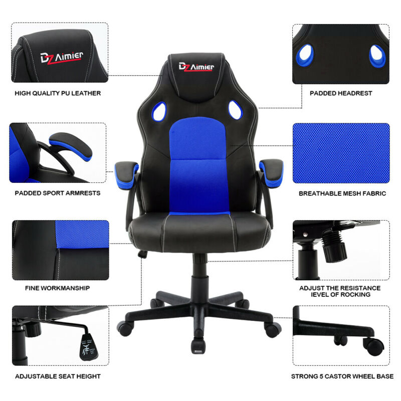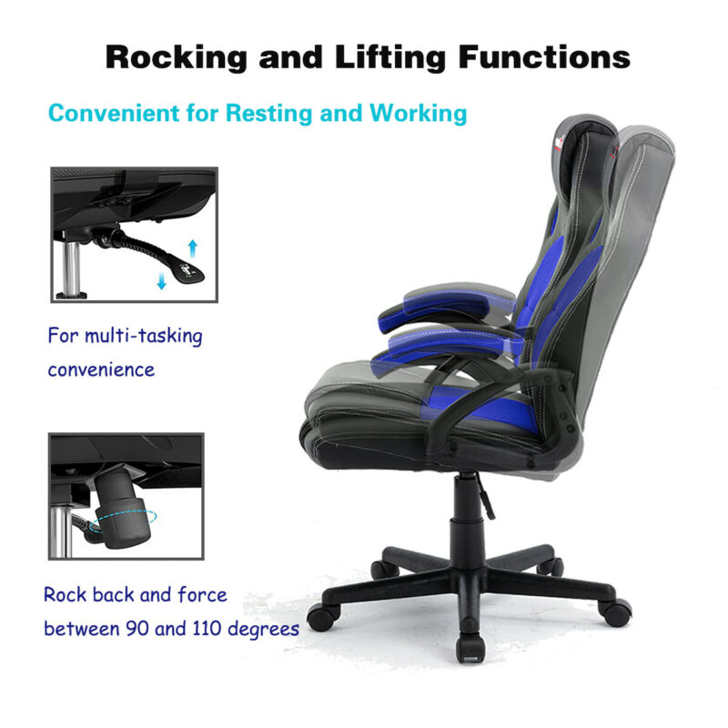 Blue Swivel PU Leather Mesh Office Racing Sport Gaming Tilt Computer Desk Chair