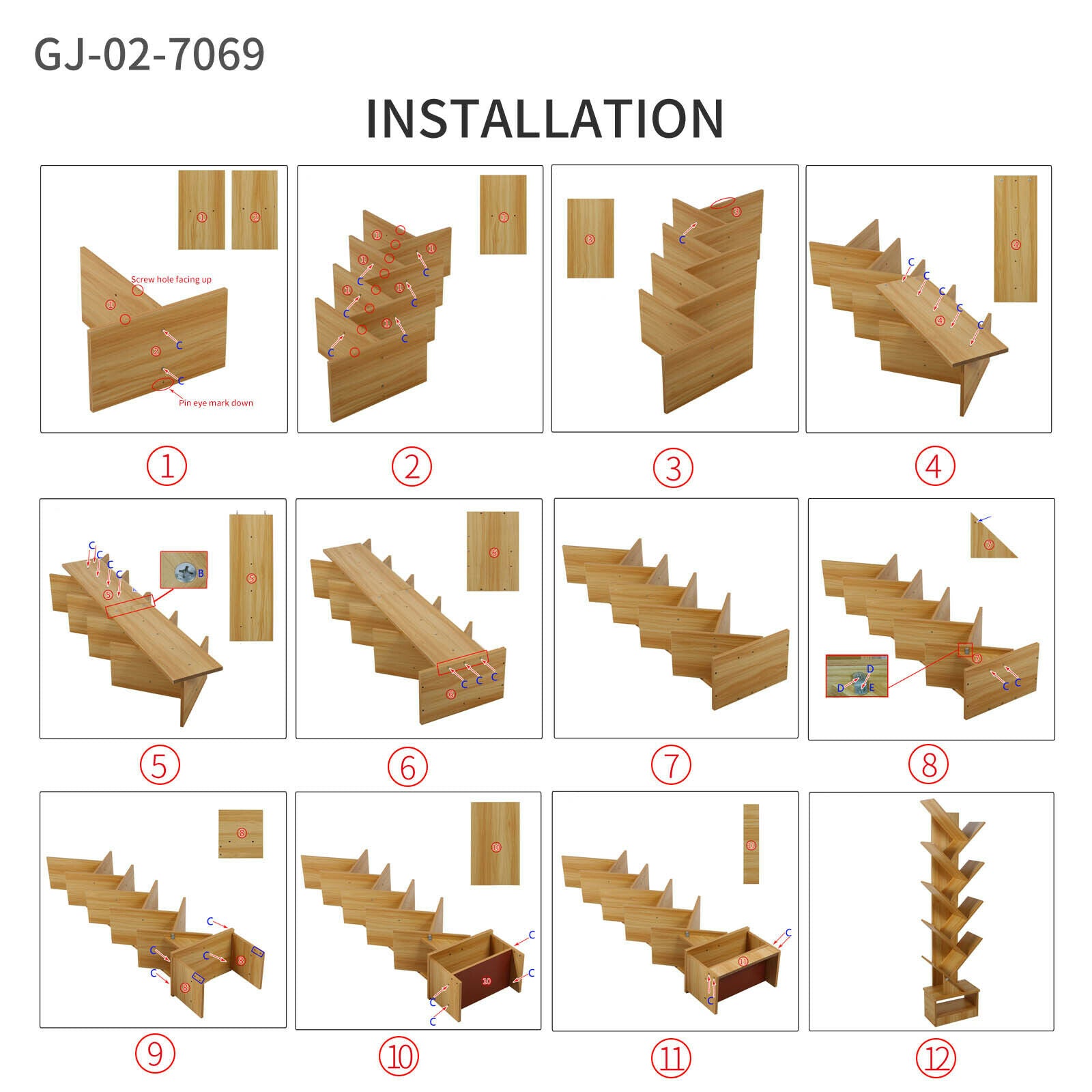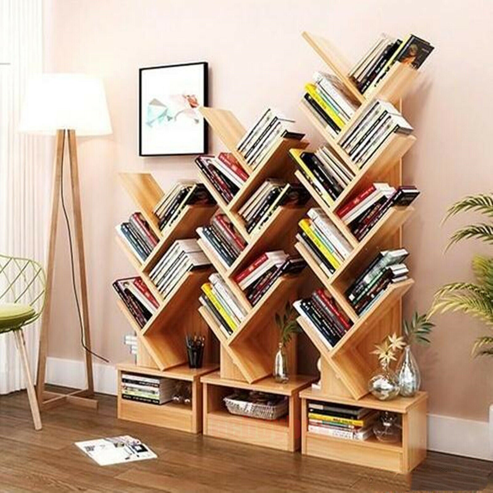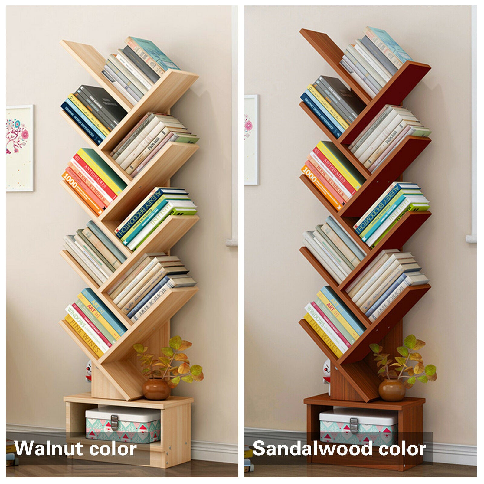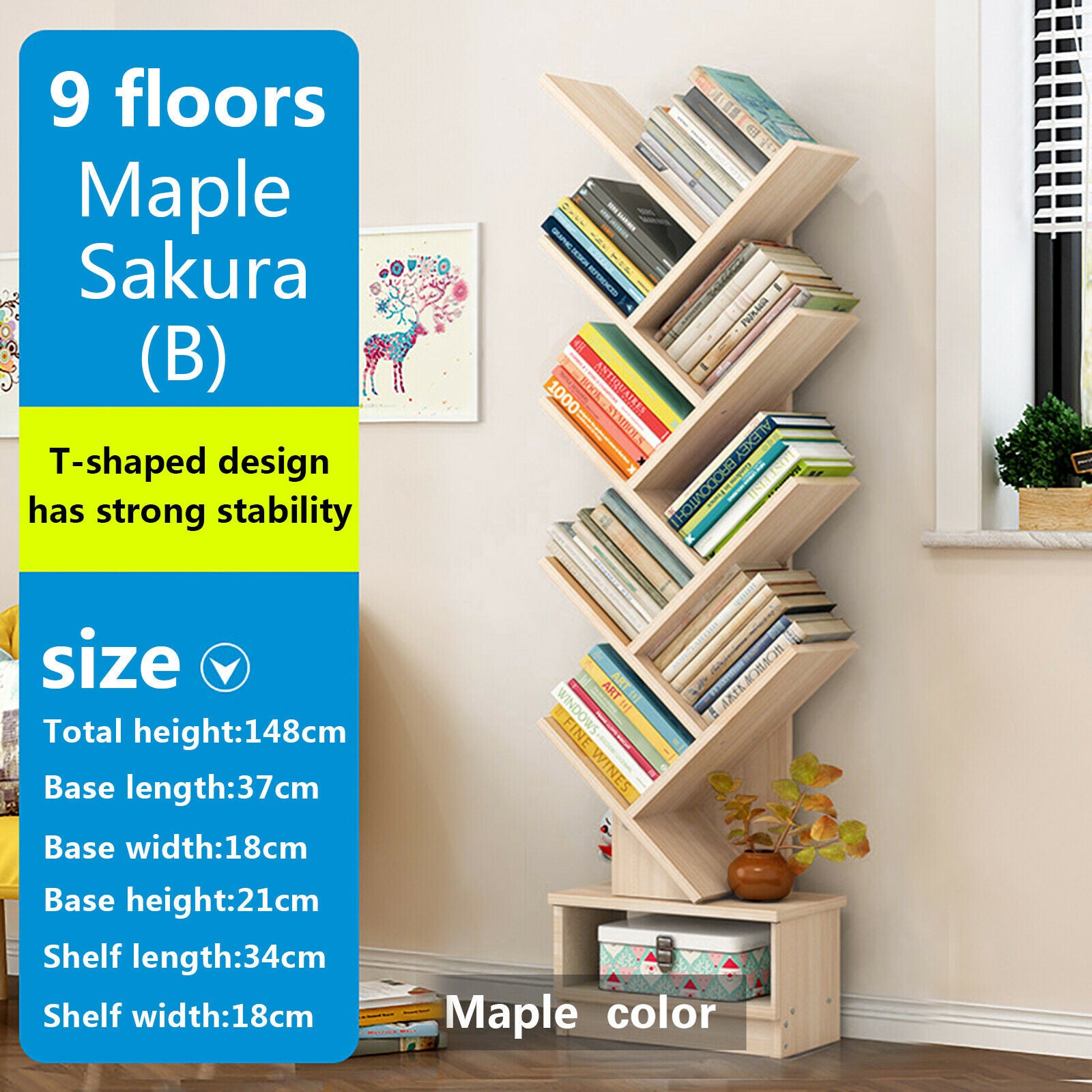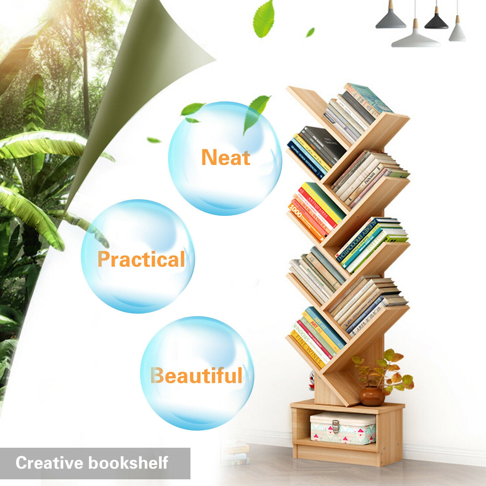 Bookcase 9-Shelf Stand Display Cases Bookshelf Shelving Wood Shelves Tree Shape