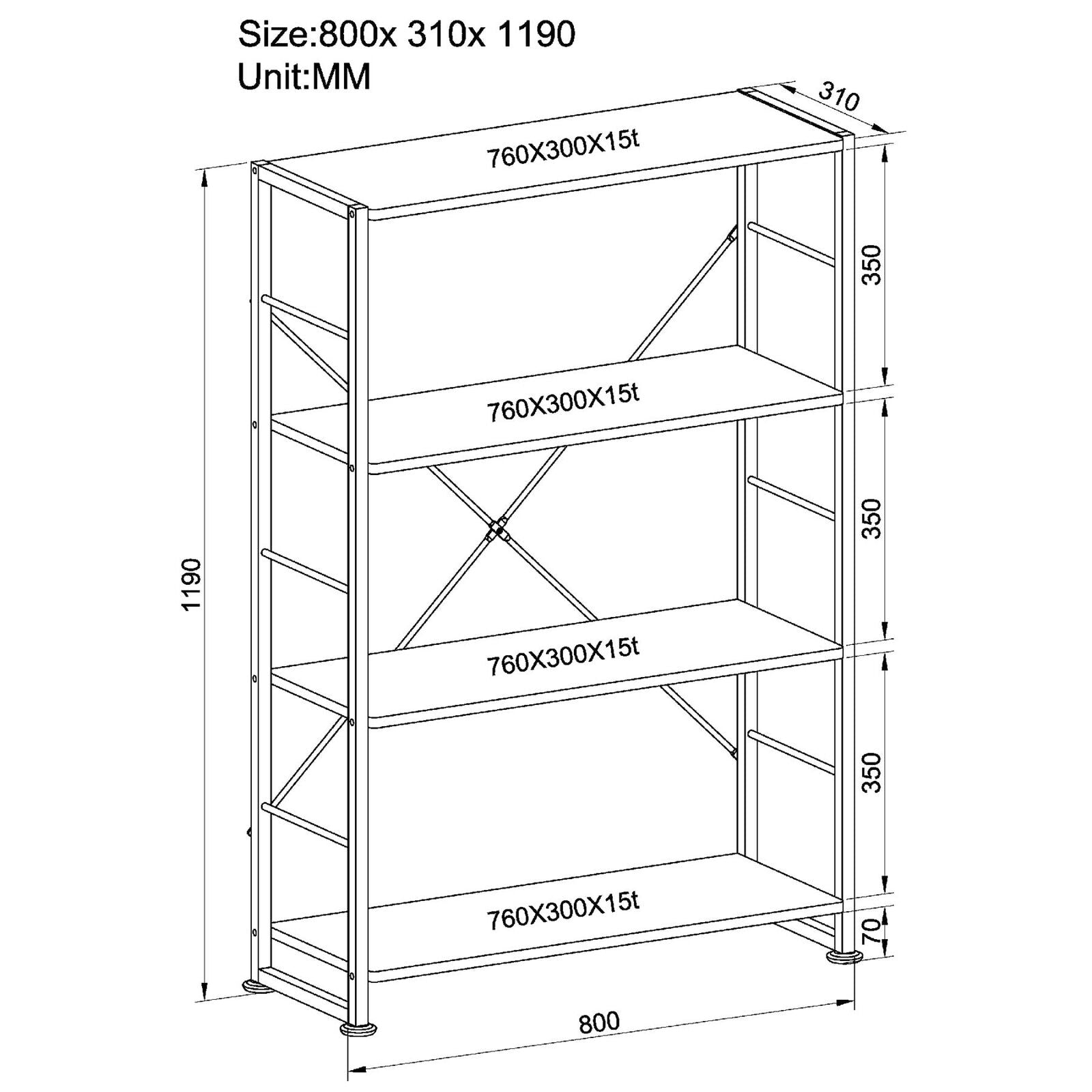 Bookcase with 4 Shelves Storage Furniture for Home Office - Piranha Ballan PC12s