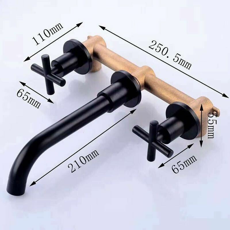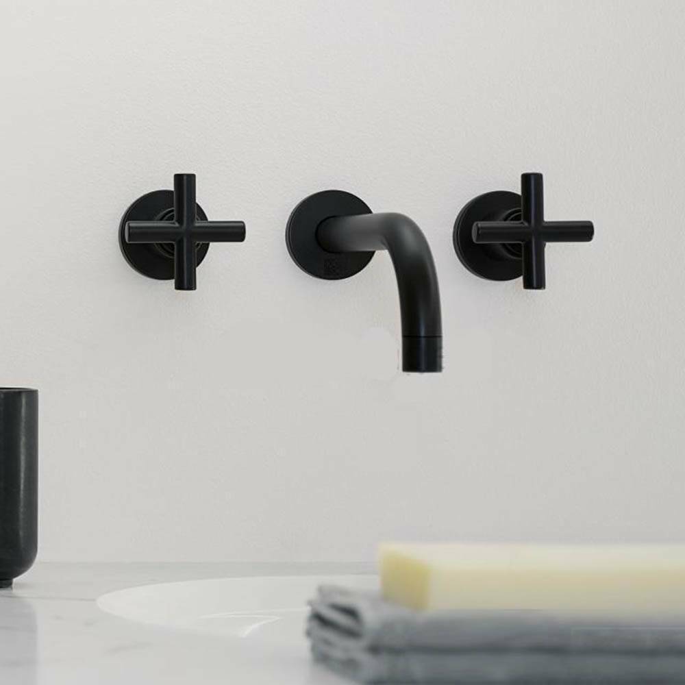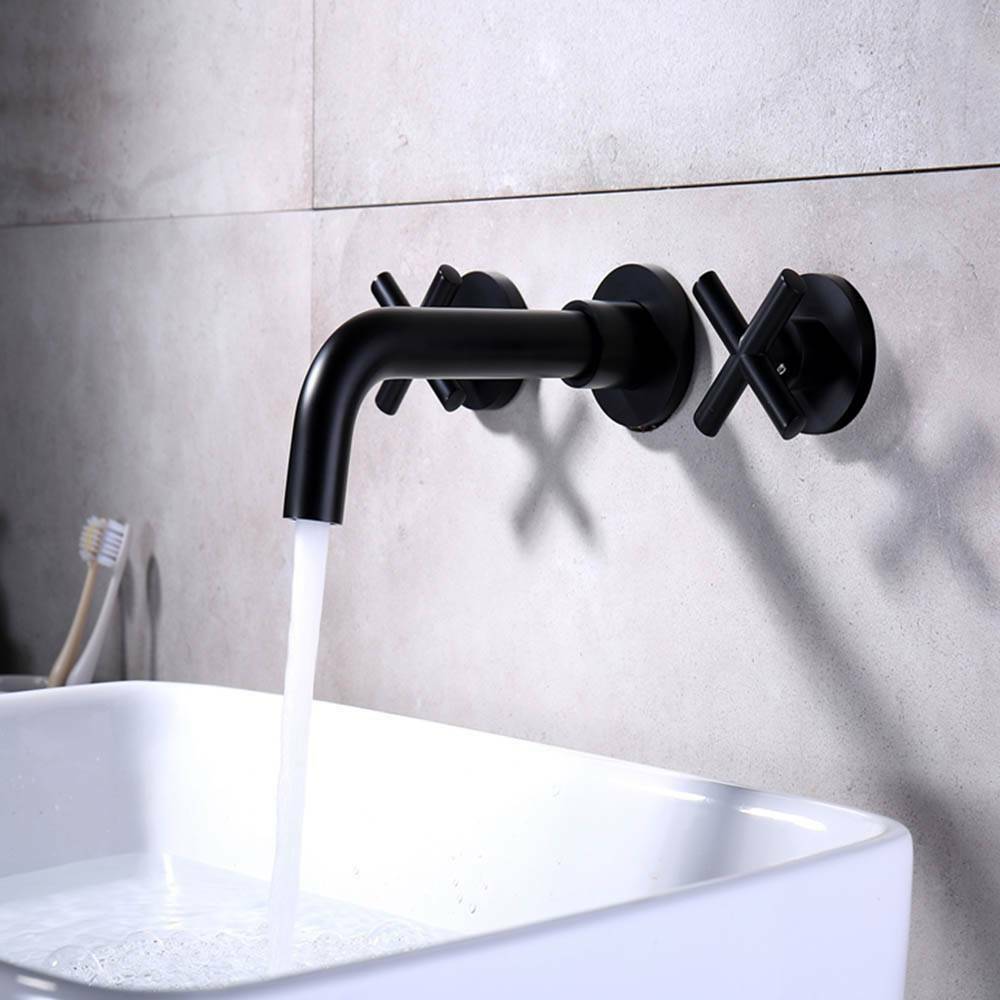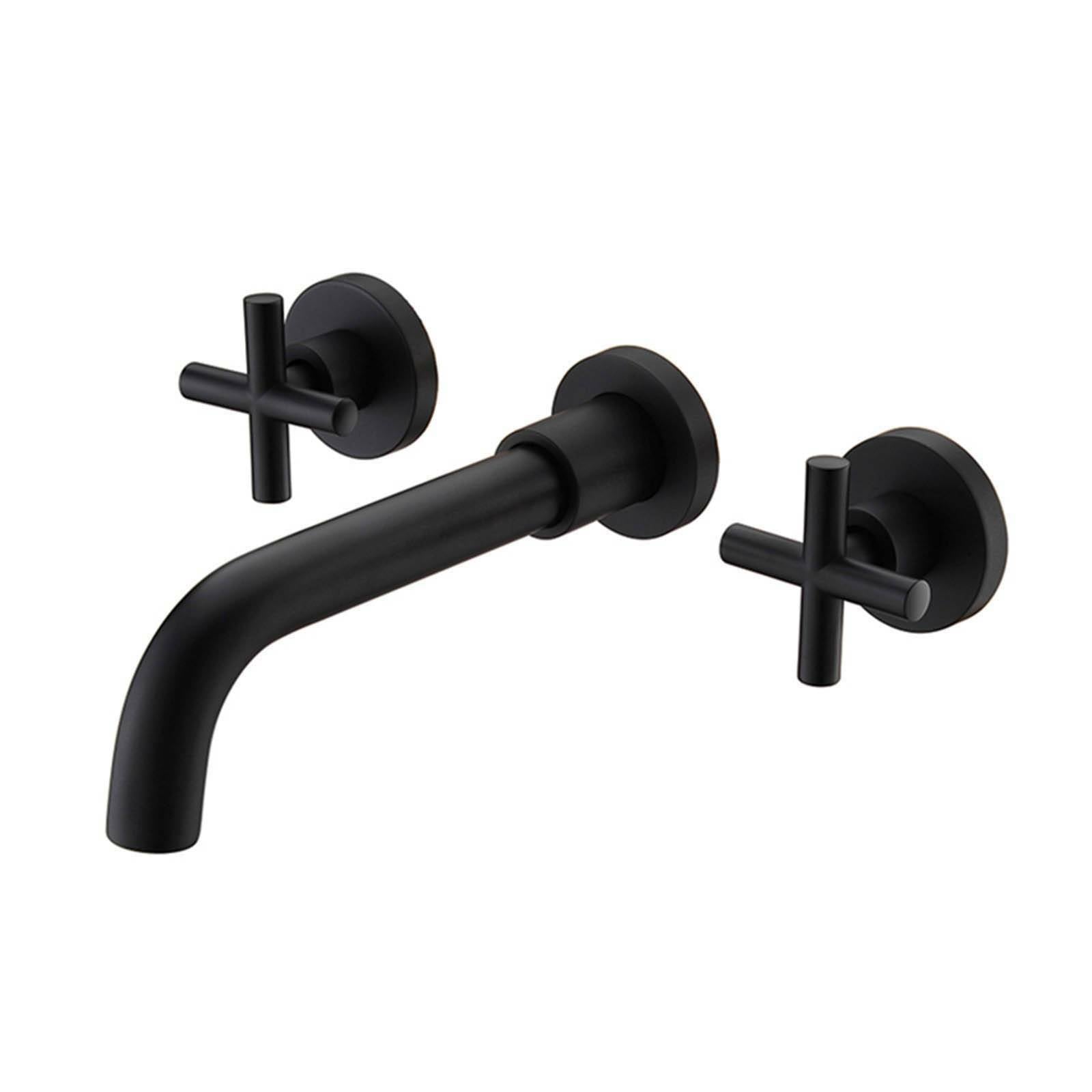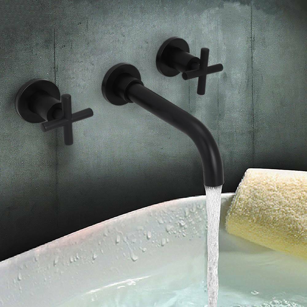 Brass Wall Mounted Basin Matte Black Faucet Bathroom Mixer Tap Rotation Spout