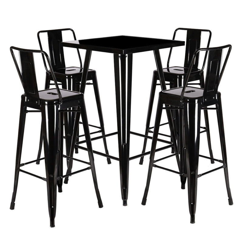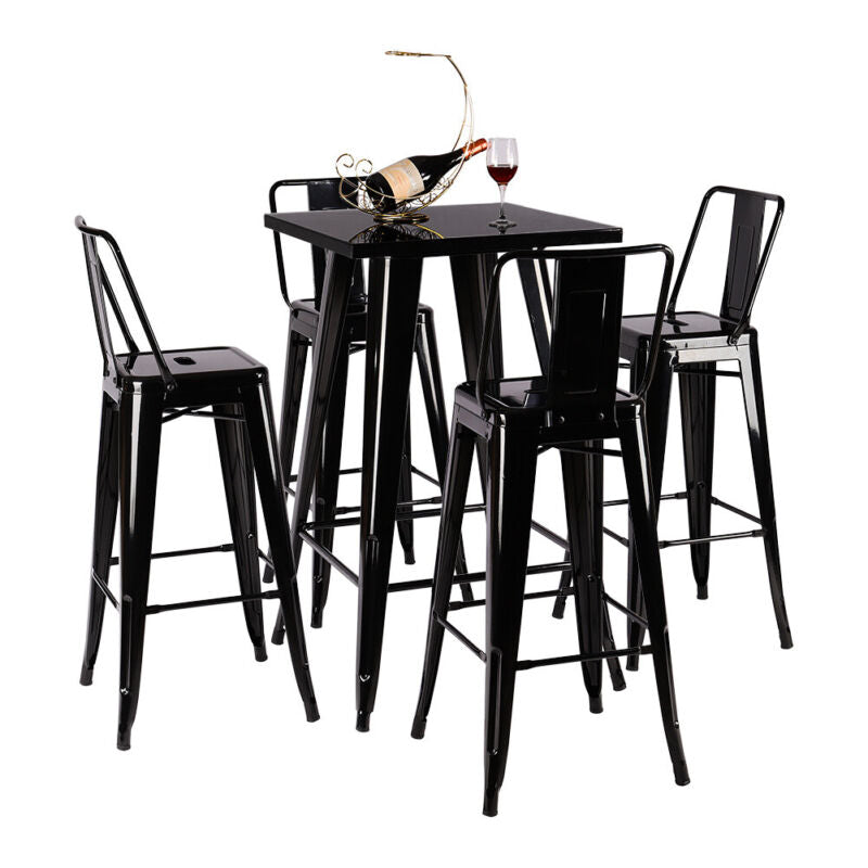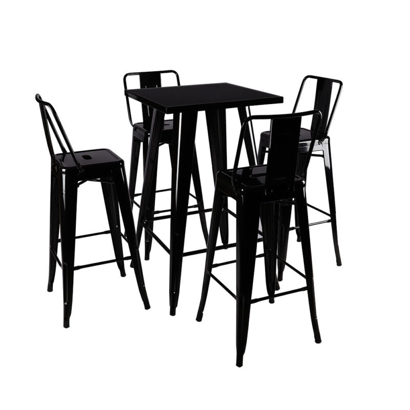 Breakfast Dining Bar Table and 4 Chairs Set Kitchen Dining Room Metal Bistro Set