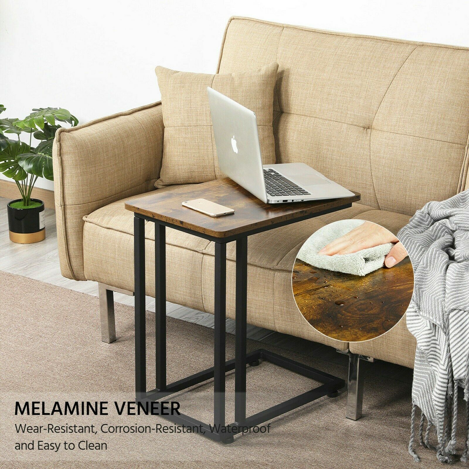 Brown End Table Industrial Sofa Table Side Table for Coffee Laptop Table Rustic