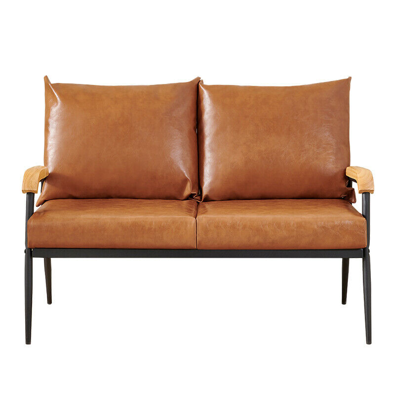 Brown Faux Leather Sofa 2 Seater Armchair Couch Living Room Metal Legs Modern
