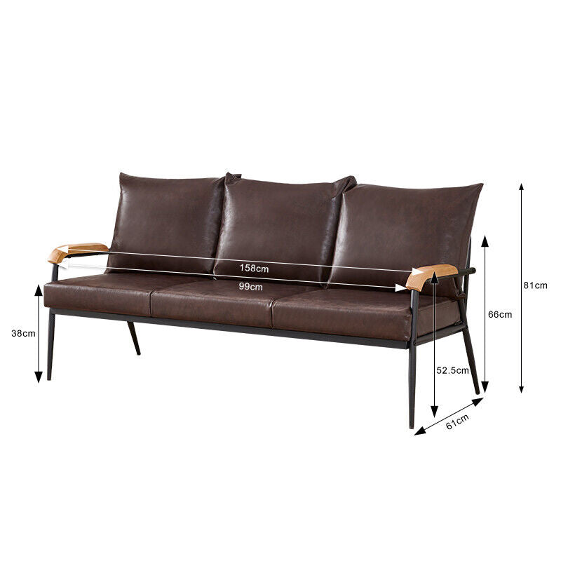 Brown Faux Leather Sofa 3 Seaters Armchair Metal Legs Couches Living Room Modern