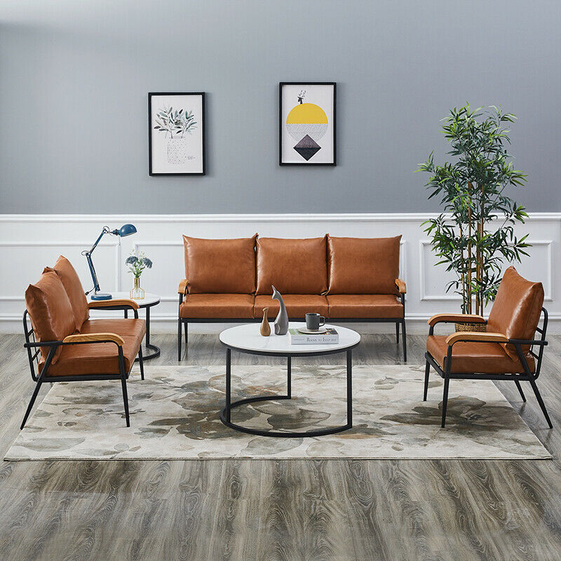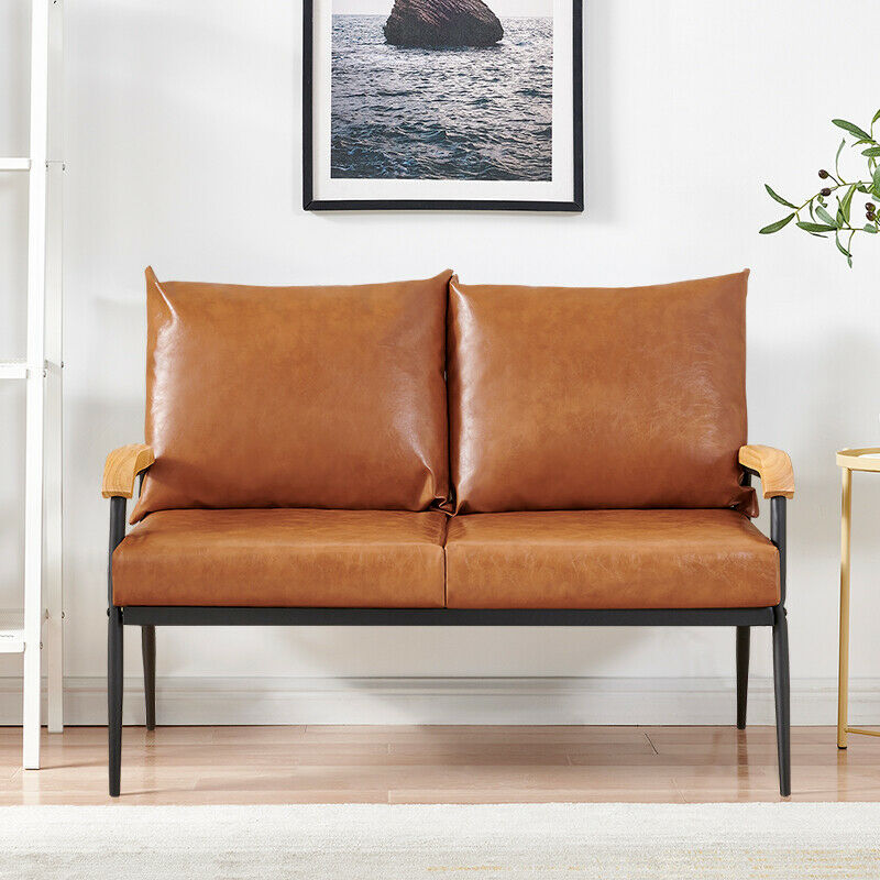 Brown Faux Leather Sofa Armchair Couch Living Room Metal Leg 1/2/3 Seaters