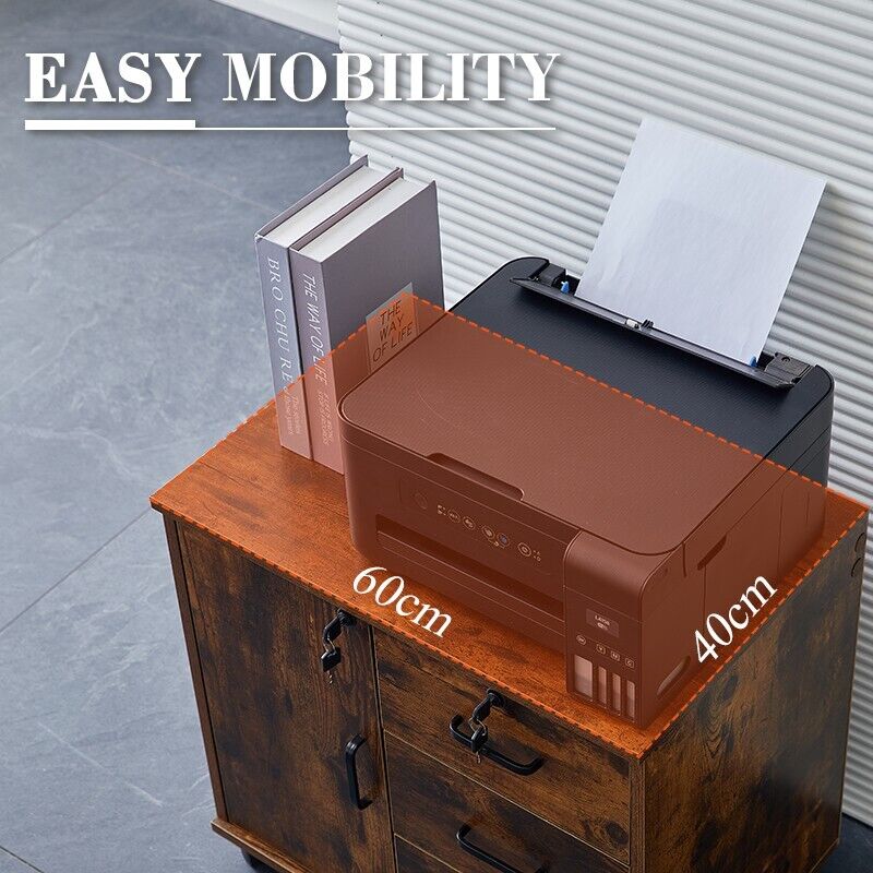 Brown Office Filing Cabinet File Drawers Wheels Mobile Printer Stand Wooden