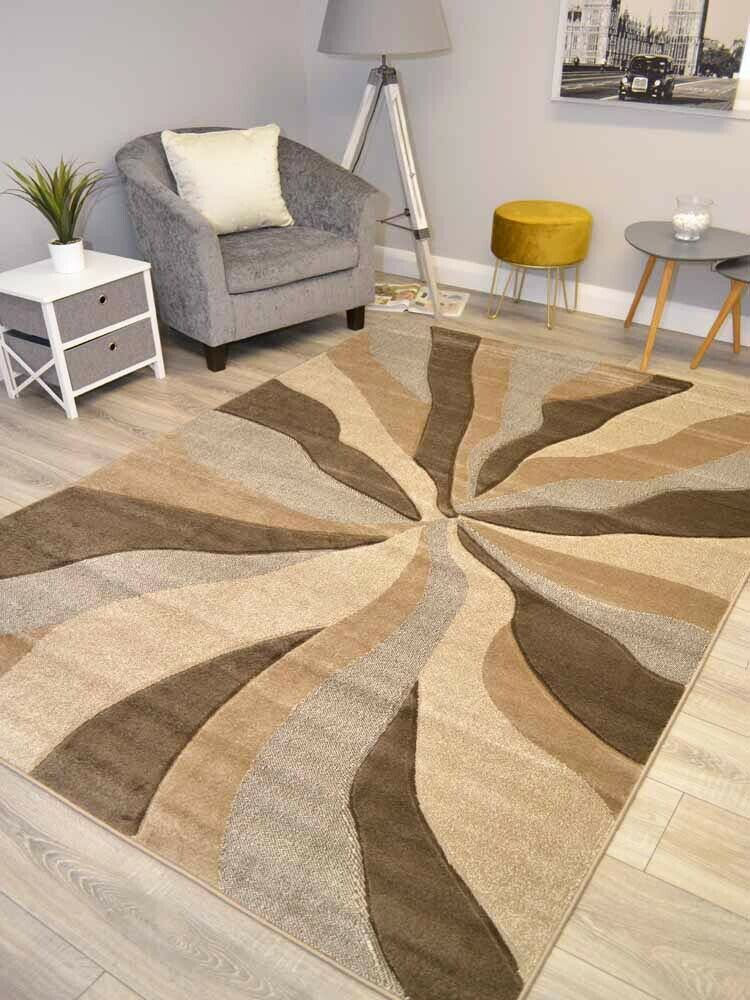 Brown Taupe Beige Floor Rug Small Extra Large Sizes Thick Soft Pile Mat Cheap UK