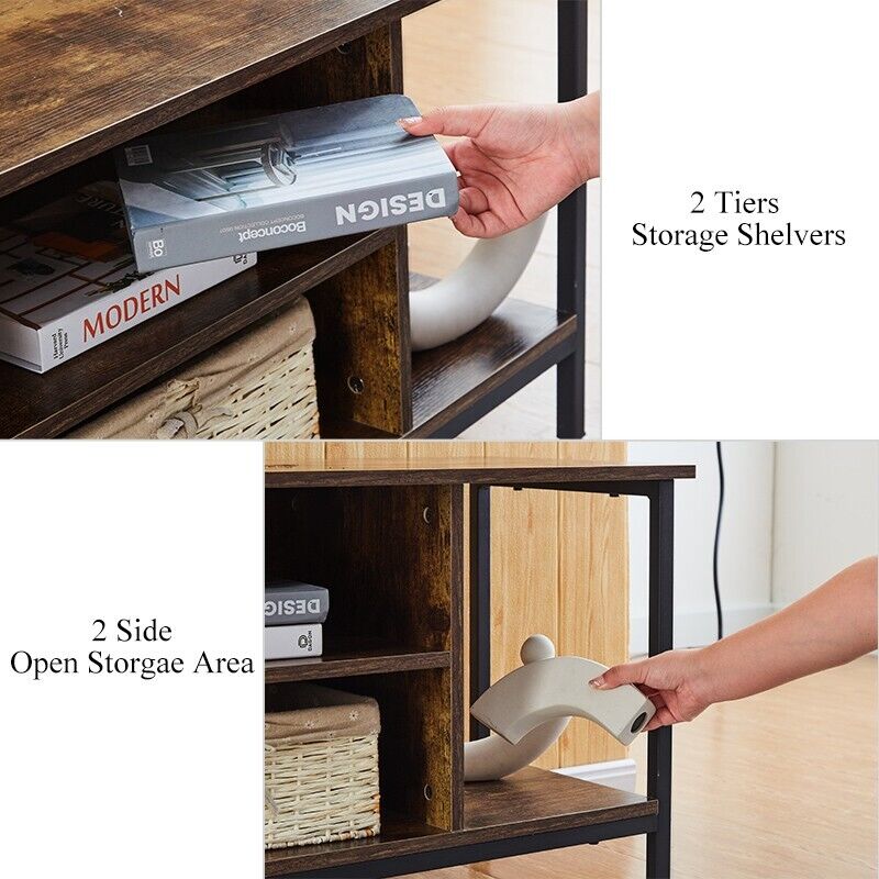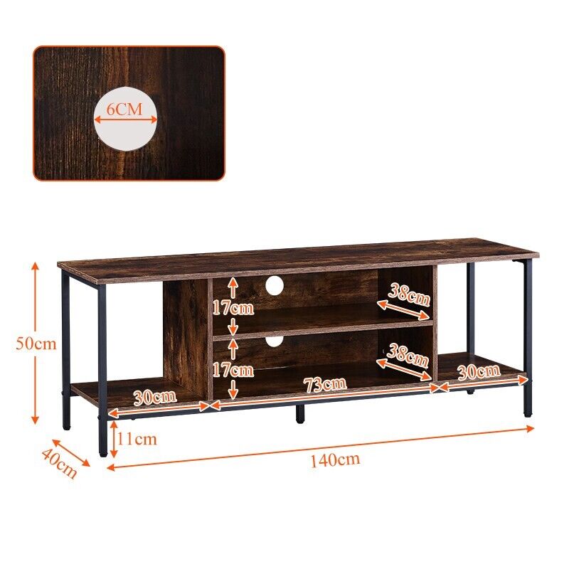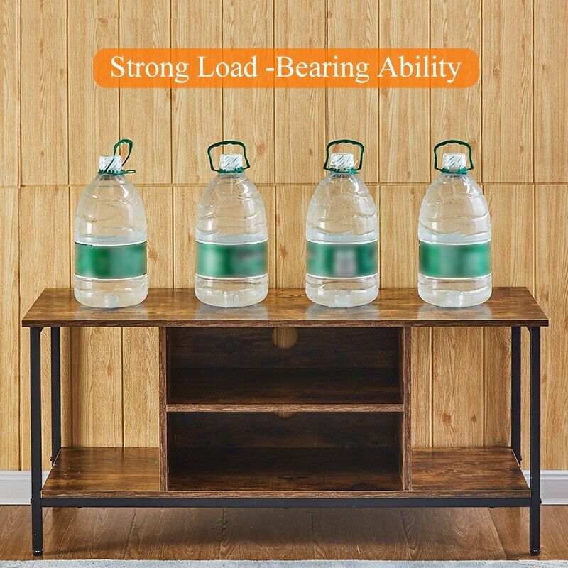 Brown TV Stand 2 Tier Large Cabinet Modern Metal Legs TV Cabinet Living Room New