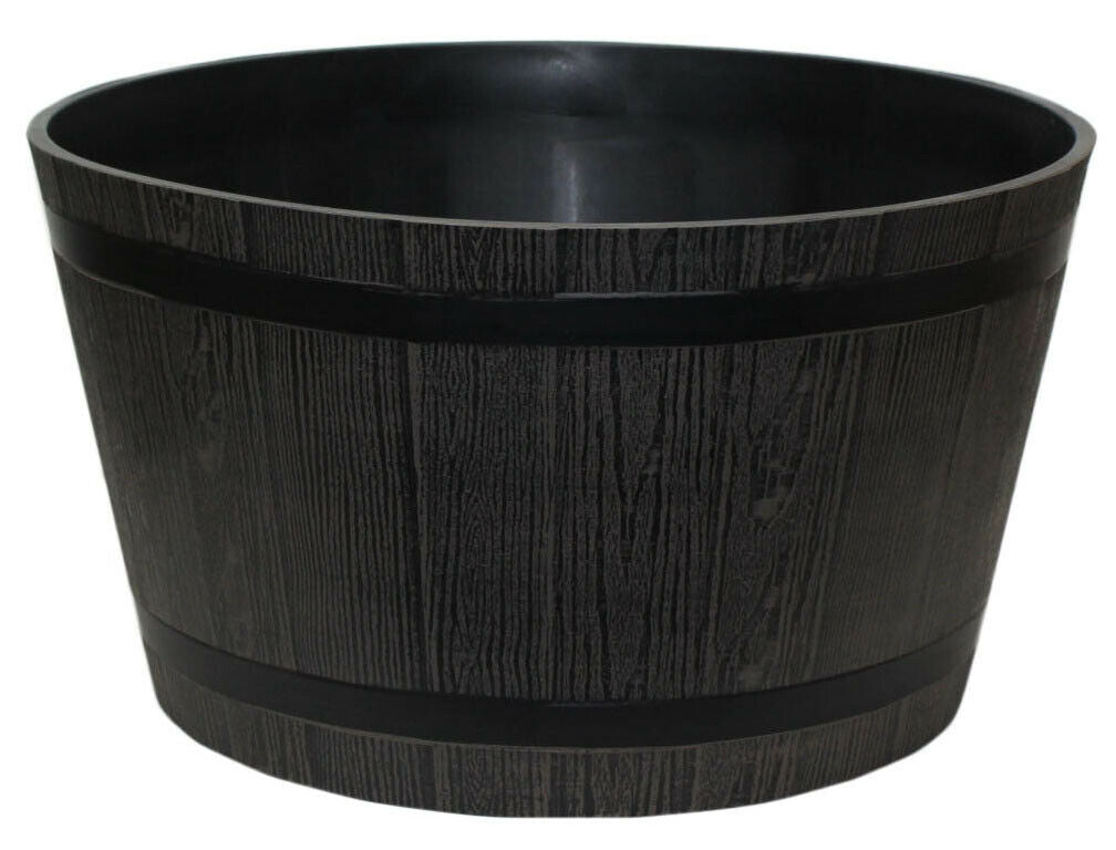 Brown Wooden Barrel Plant Pot Outdoor Garden Flower Tree Round Plastic Planter