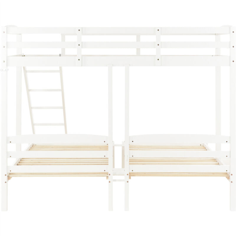 Bunk Beds Triple 3ft Single Bed Pine Wood Bed Frame High Sleeper for Kids White