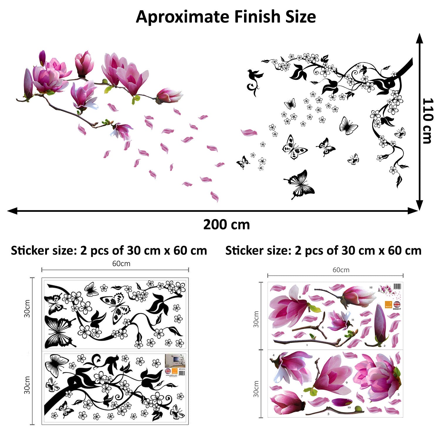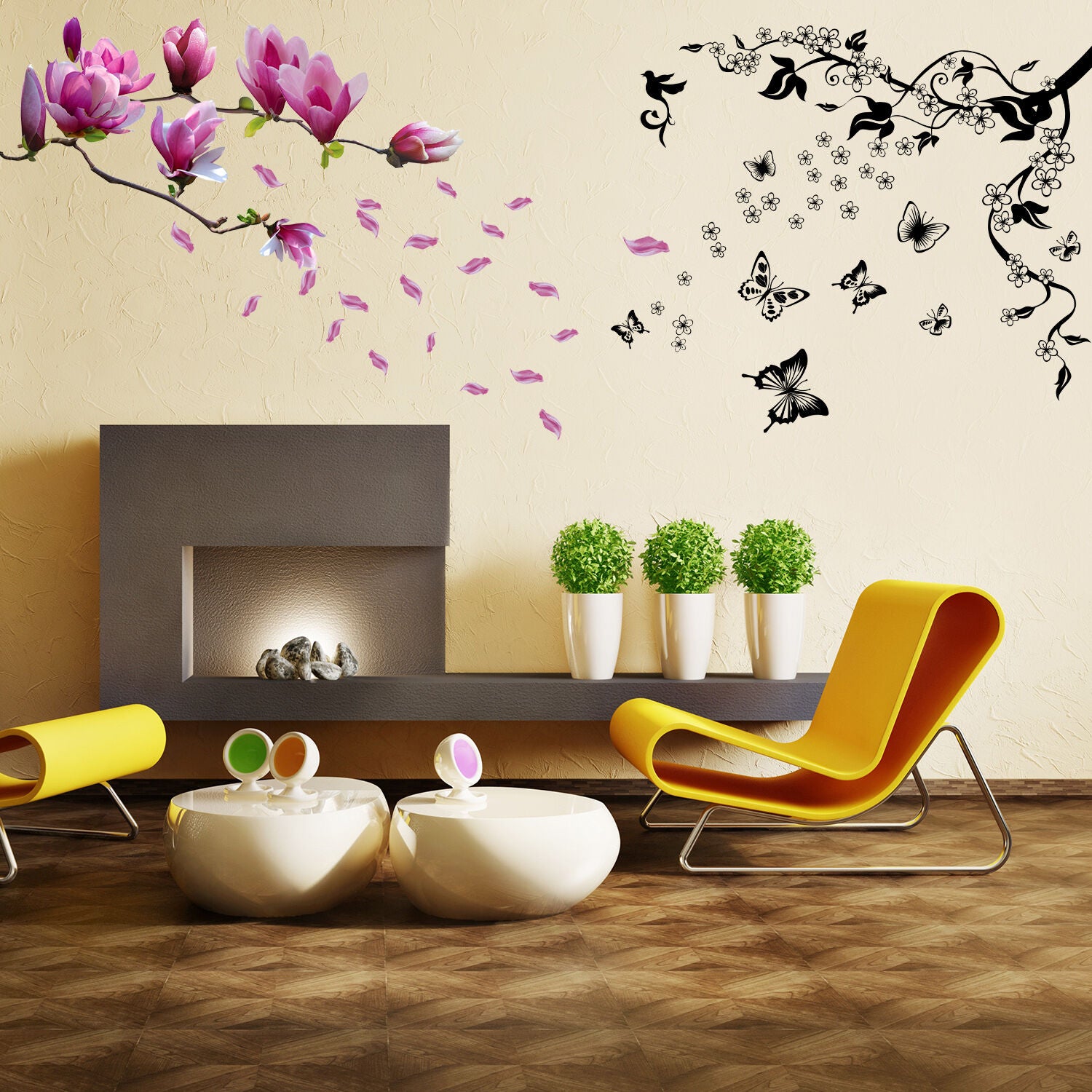 Butterflies Vines and Magnolia Flowers Spring Wall Stickers Home Art Decorations