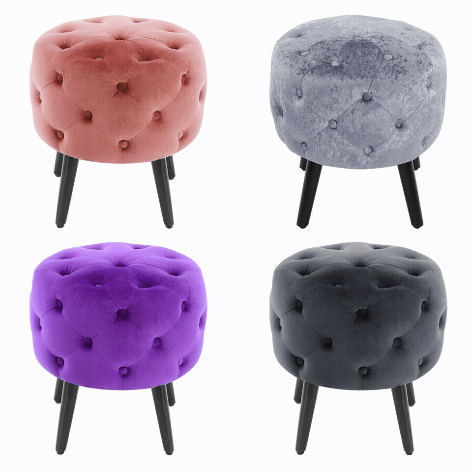 Button Ottoman Footstool Velvet Round Pouffe Stool Upholstered Change Shoe Chair