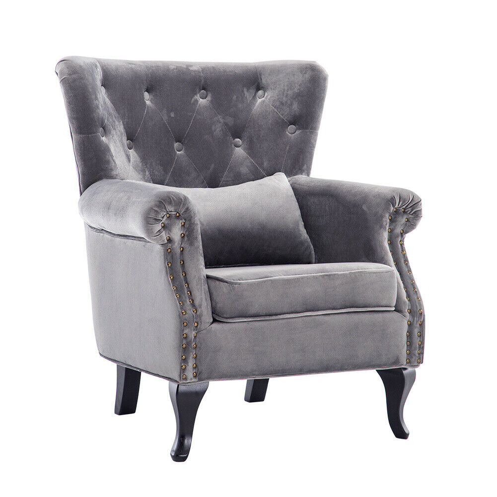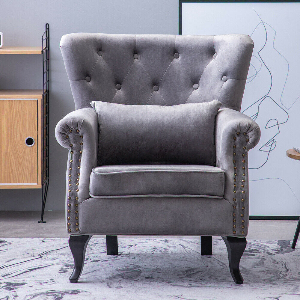 Button Velvet High Back Armchair Winged Chair Occasional Retro Sofa Seat Bedroom