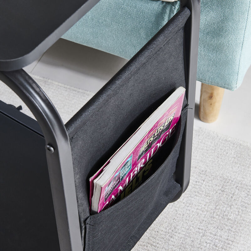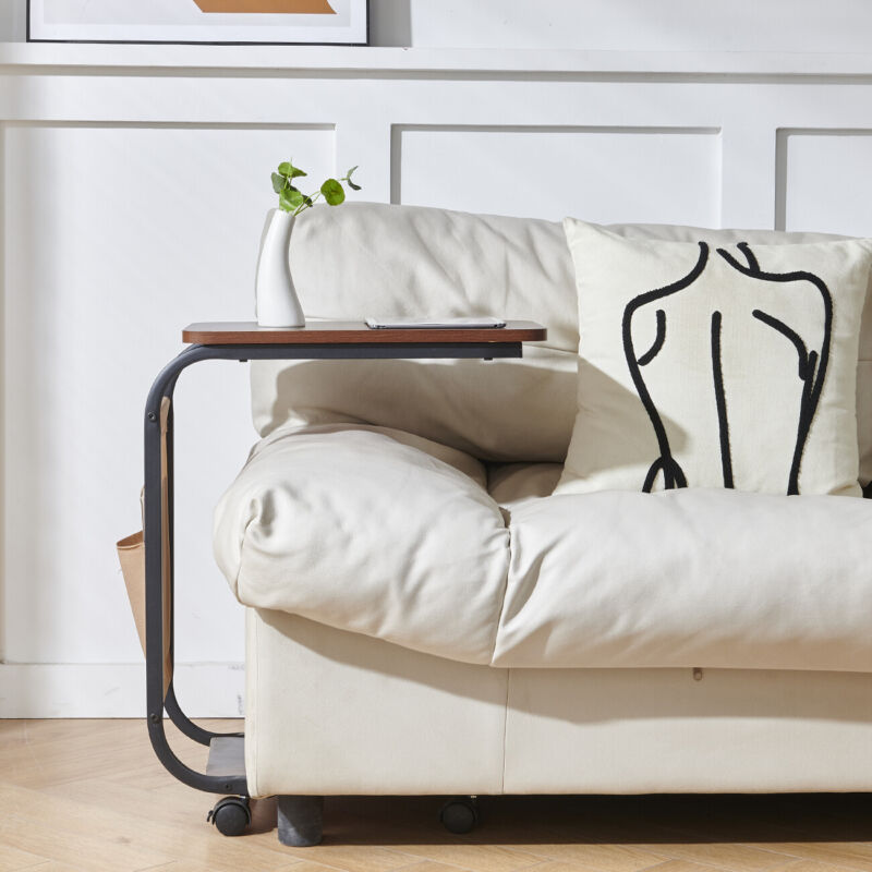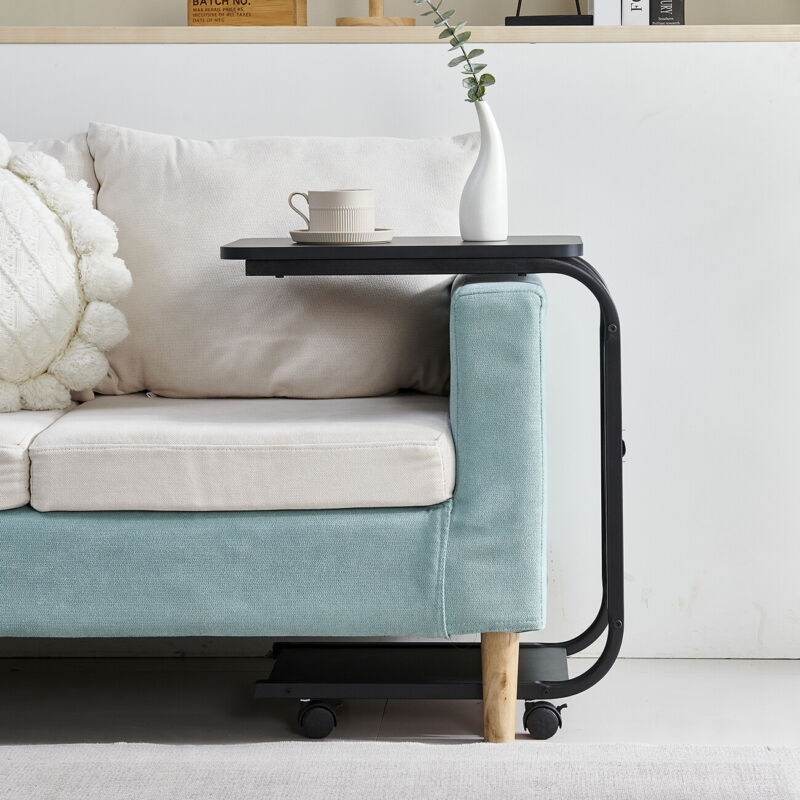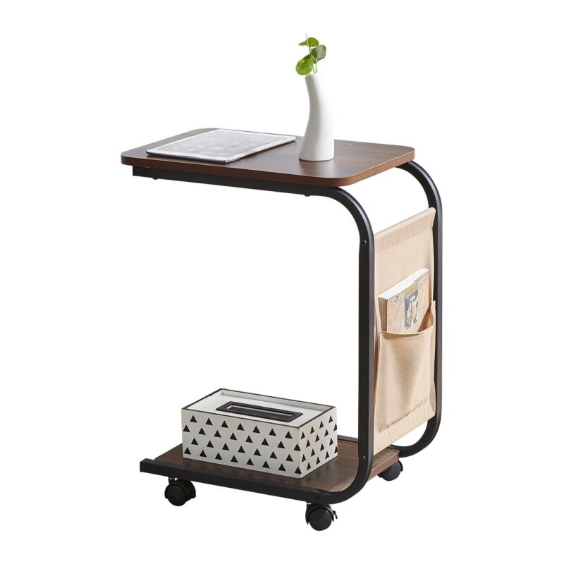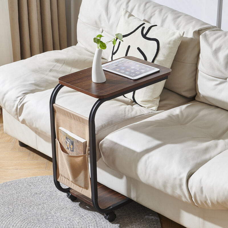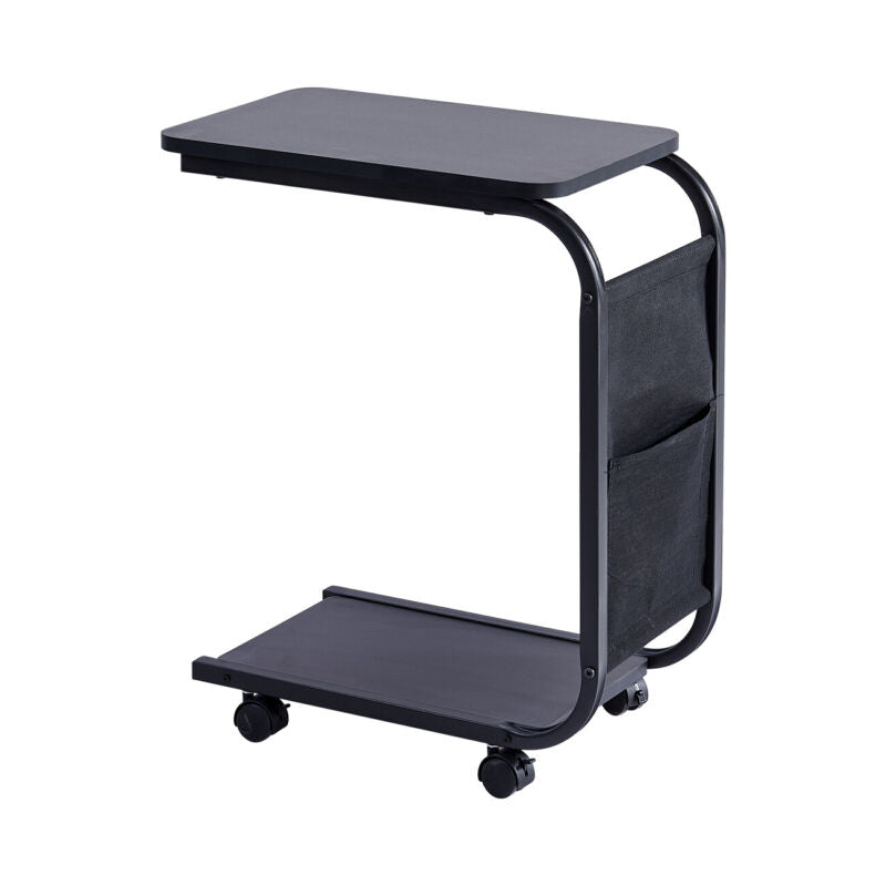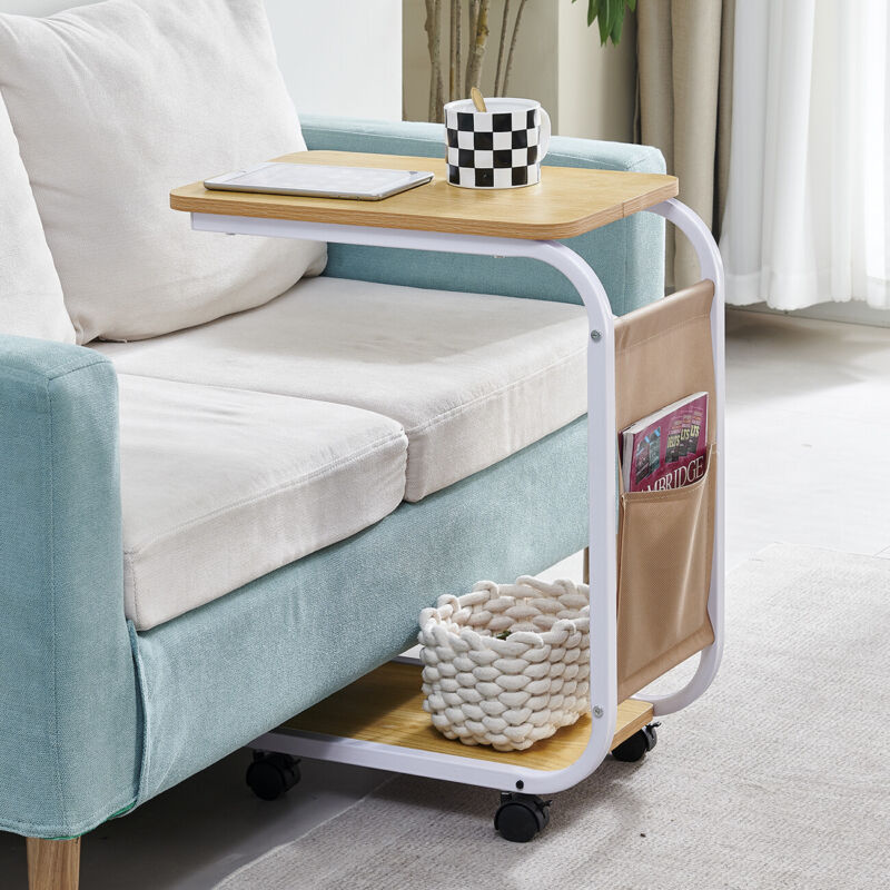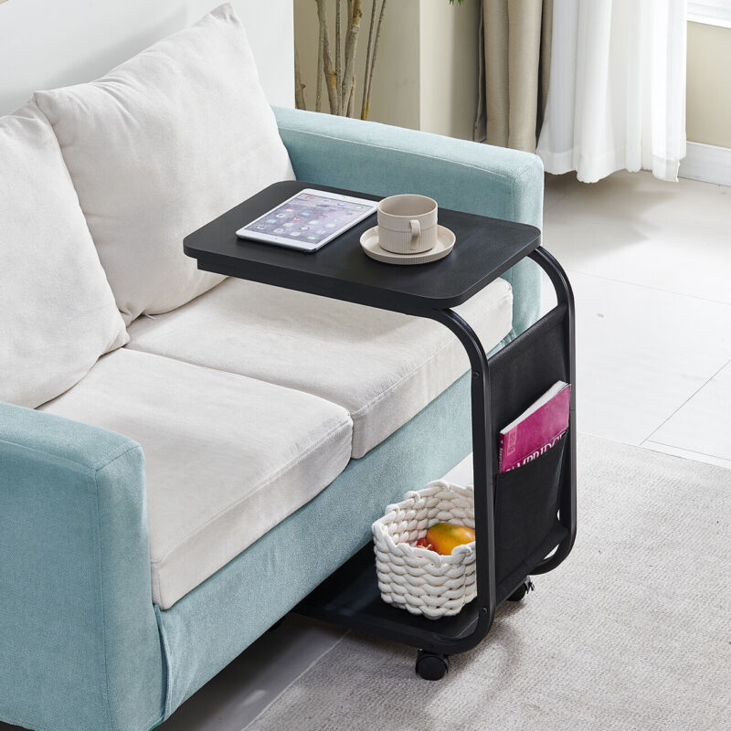 C Shaped Side Table with Wheels for Living Room Mobile Sofa Side End Tables