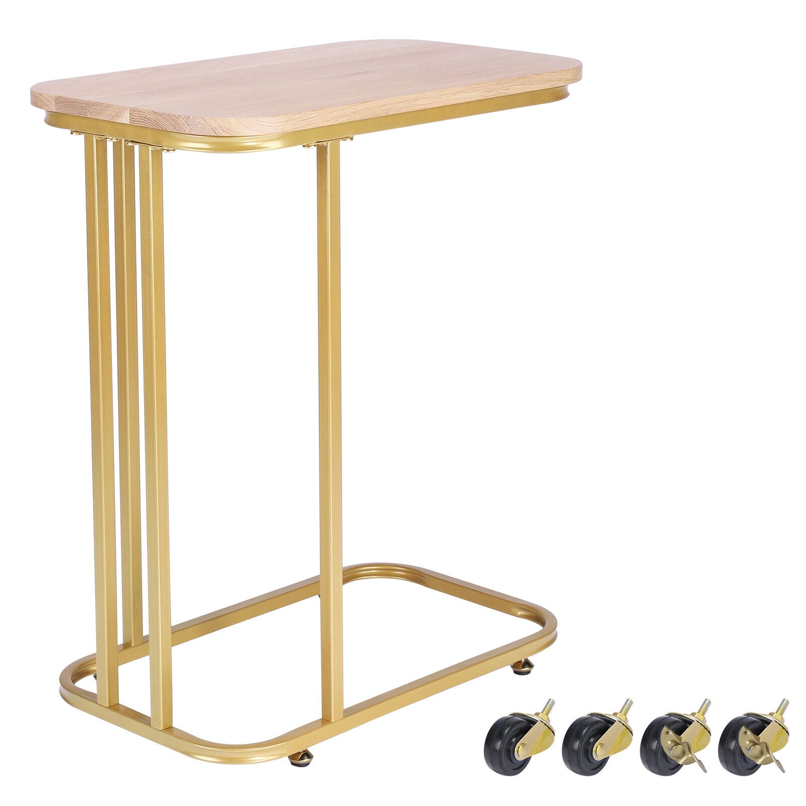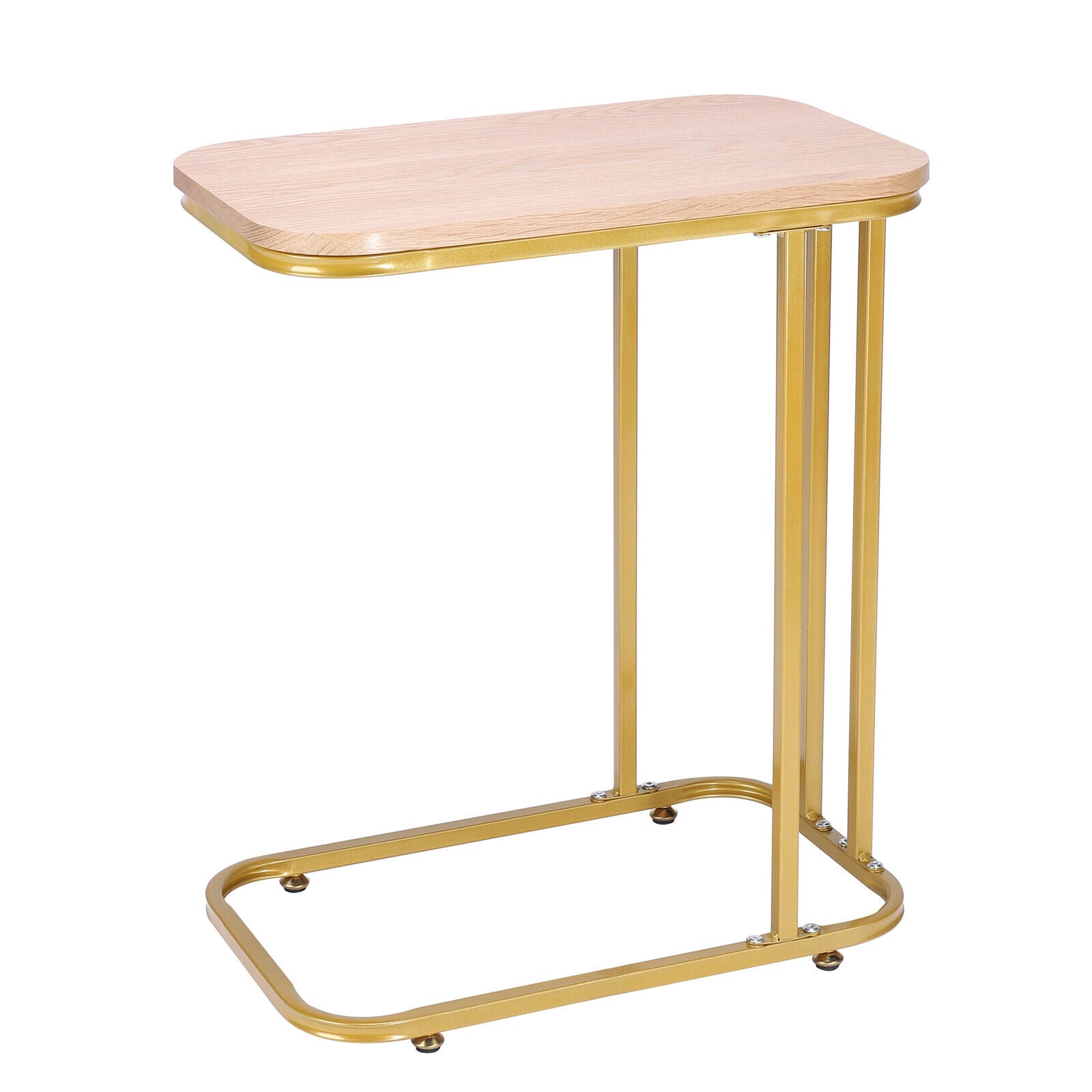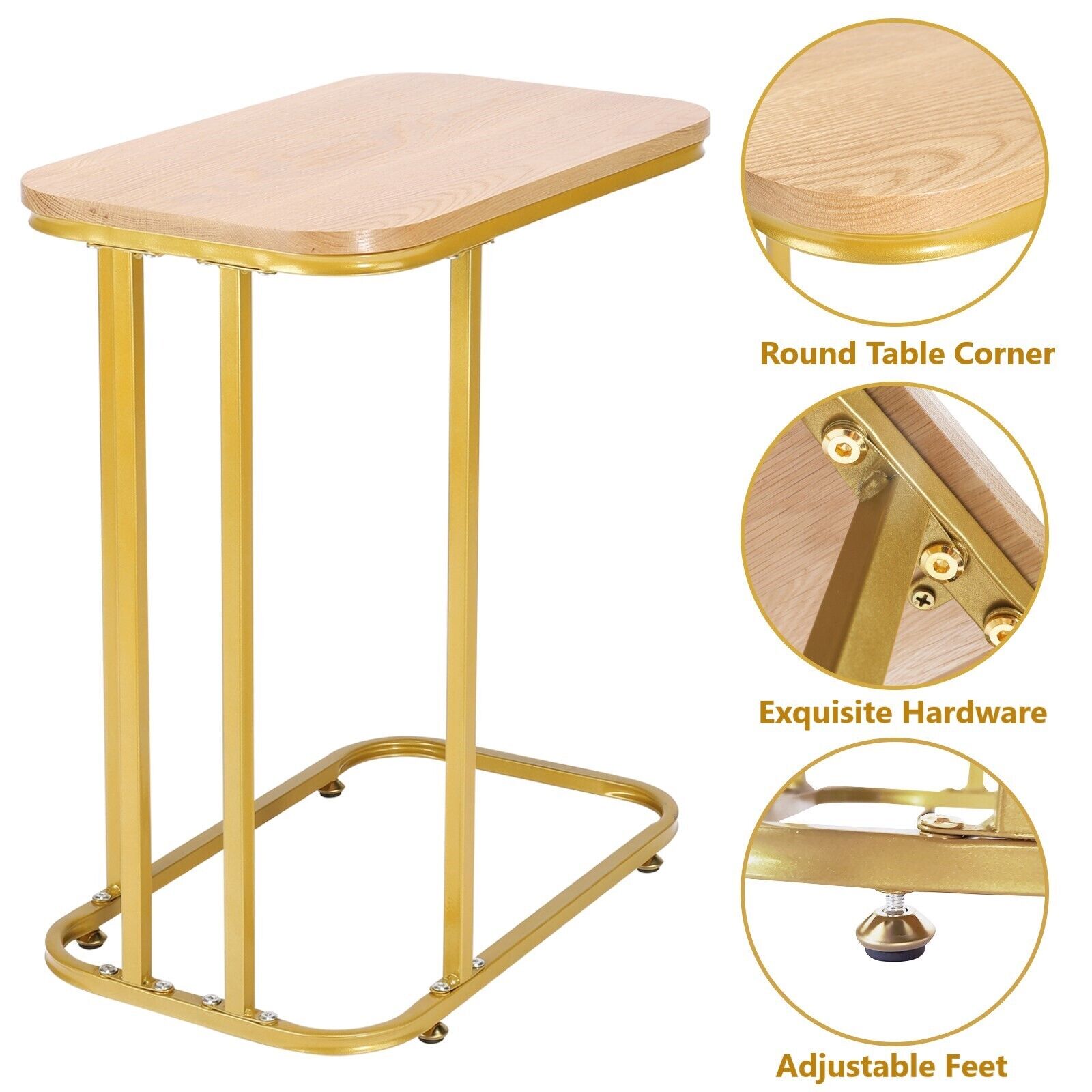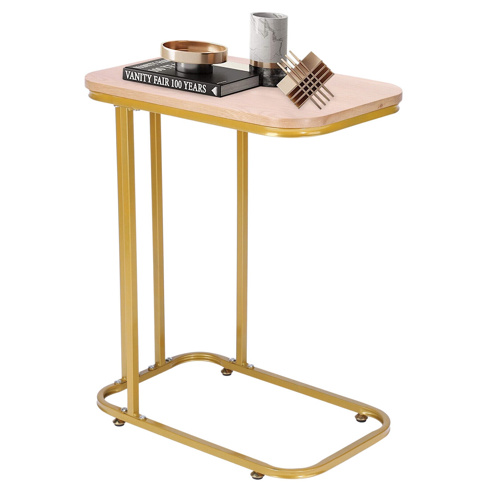 C-Shaped Sofa Side Table Golden Metal Frame End Coffee/Snack Table Living Room