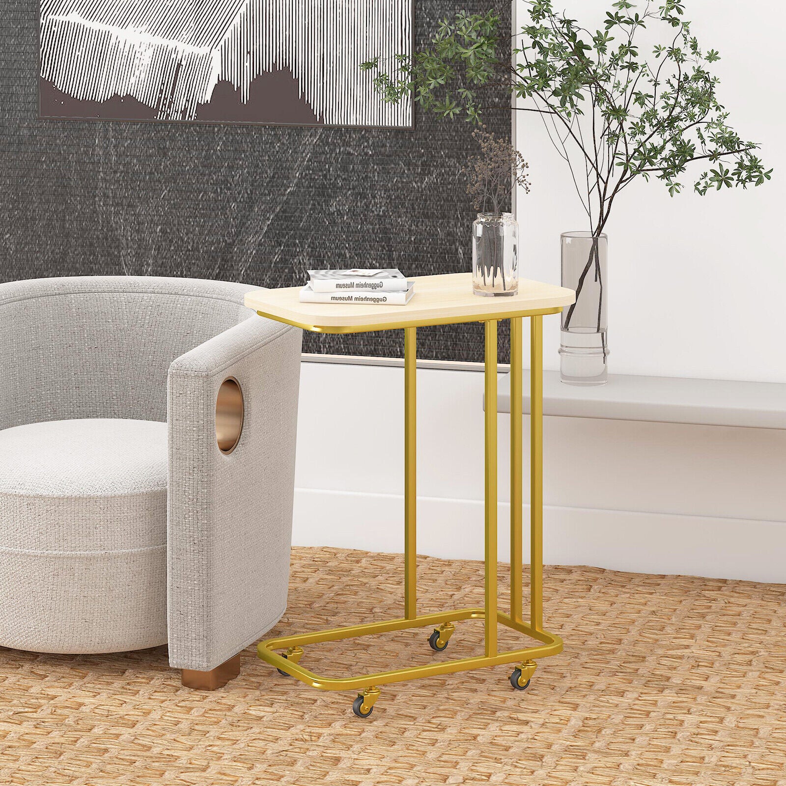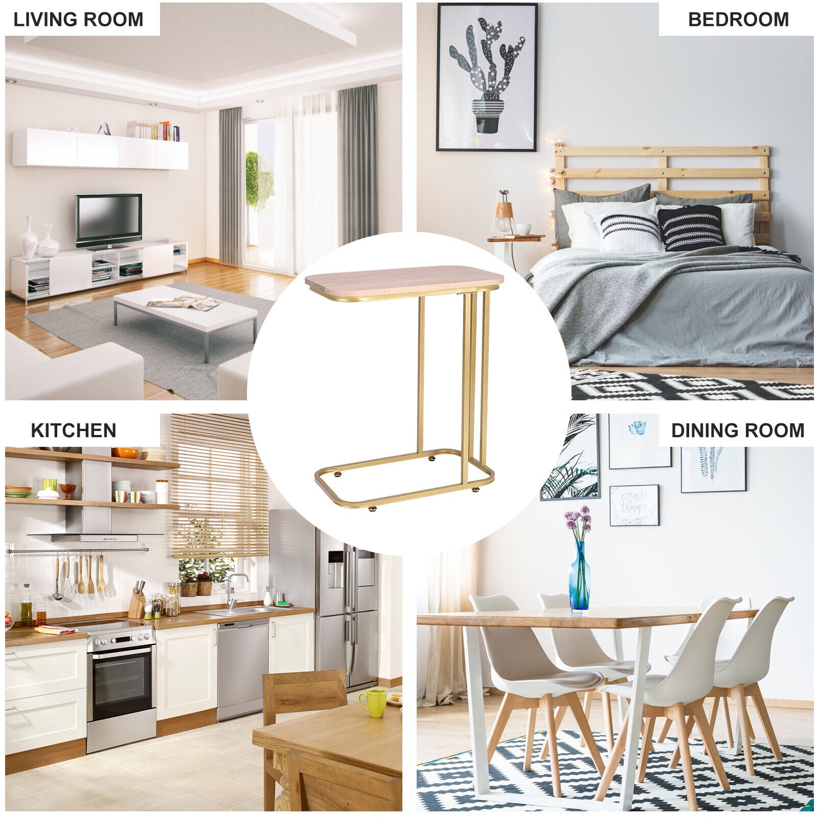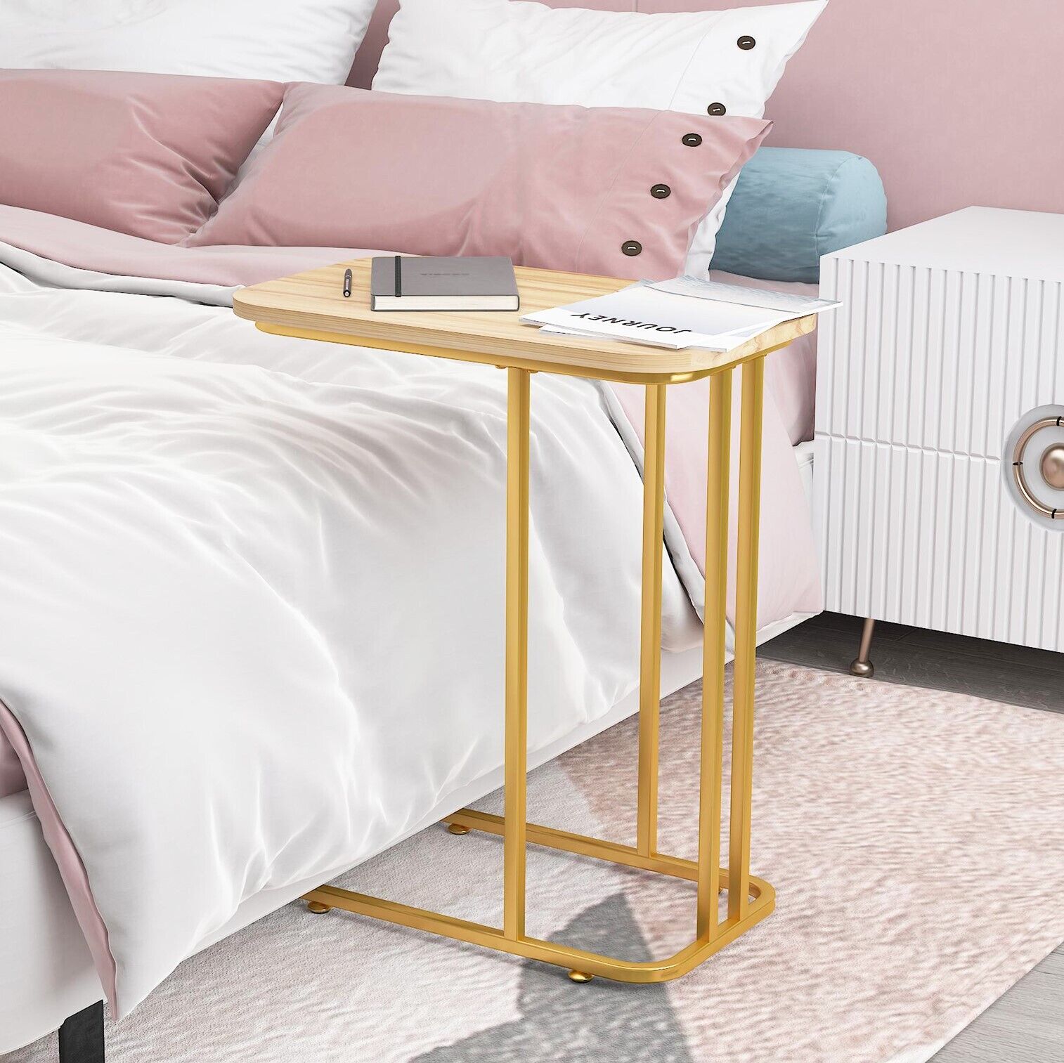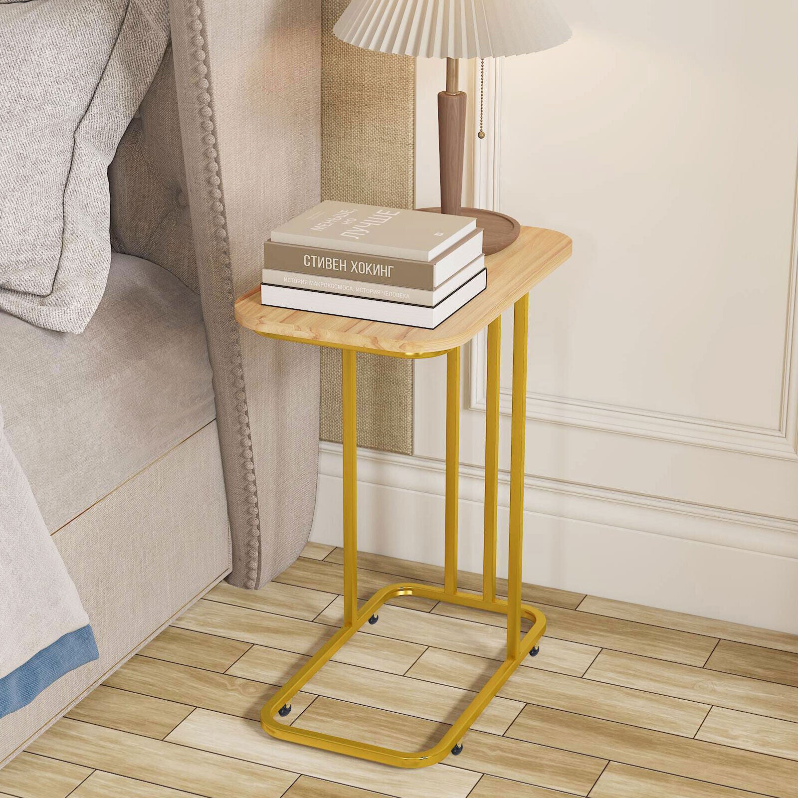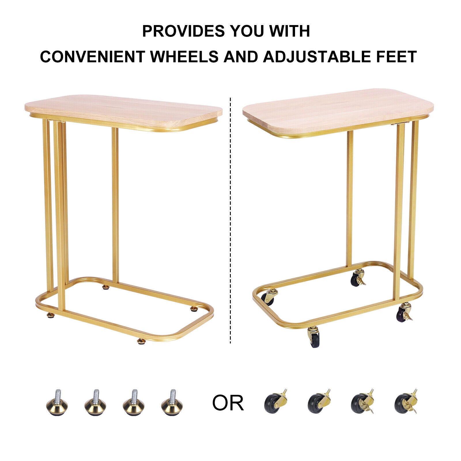 C-Shaped Sofa Side Table Golden Metal Frame End Coffee/Snack Table Living Room